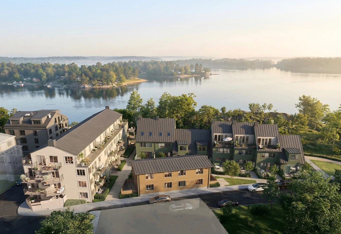 Det blir ett kvarter där både vardagen och helgen känns enkel, trygg och nära. Där livsnjutare bor i nya, bekväma och väl tilltagna premiumbostäder med utsikt över Vaxholmsfjärden. Och där barnfamiljer lägger vardagspussel och hittar utrymme på olika plan i stora, exklusiva par- och radhus med egen uteplats och kamin.