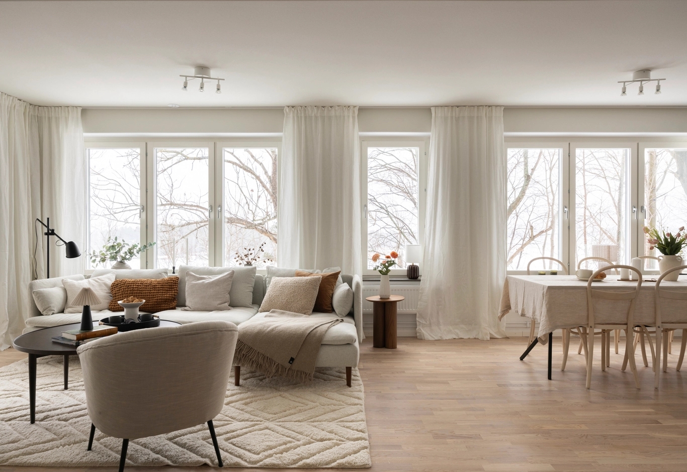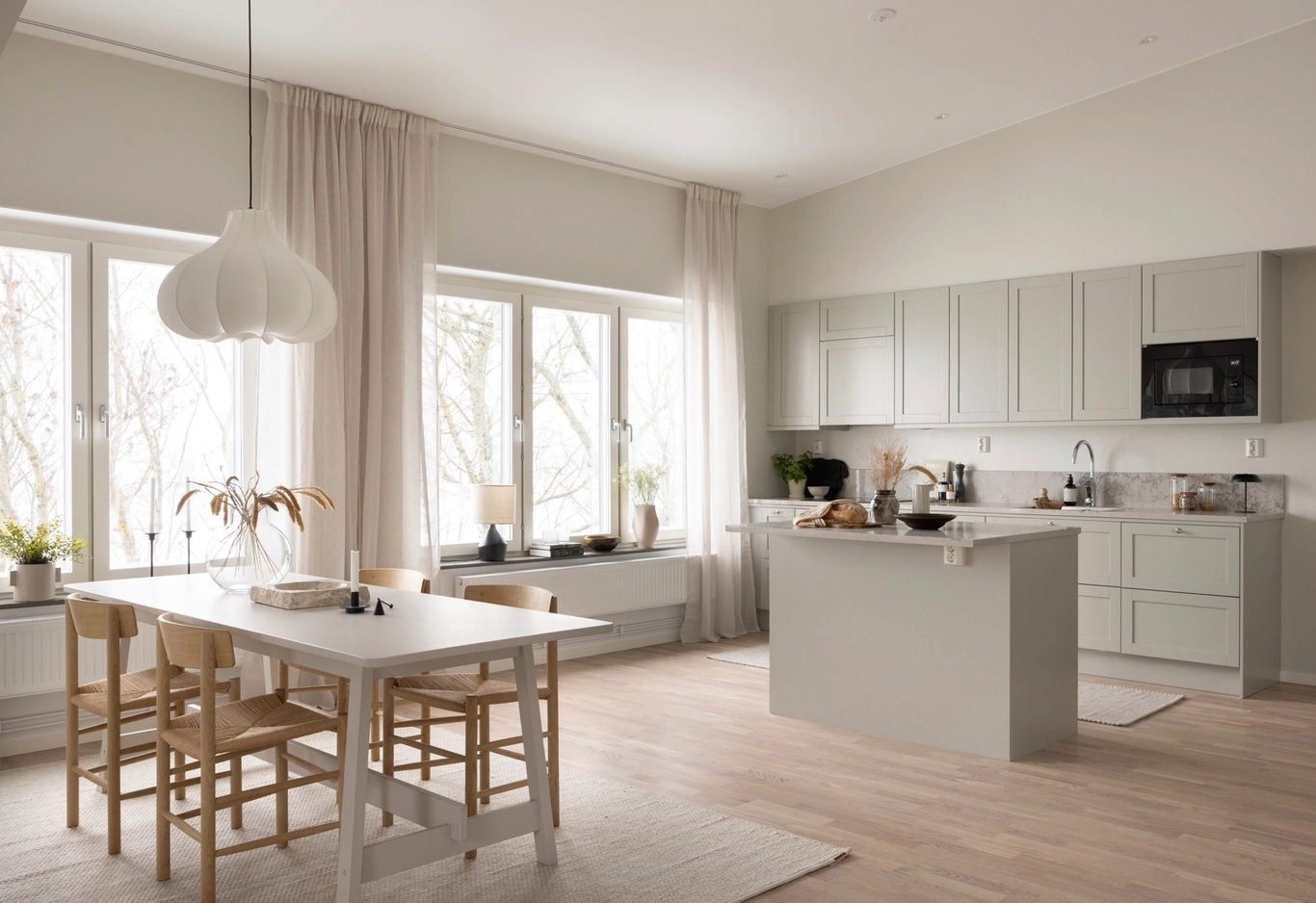 Bostäderna är öppna och ljusa med fönster i minst tre väderstreck. Planlösningarna är gjorda med kök, matplats och vardagsrum i ett sammanhang. Från de generösa sällskapsrummen och från balkonger och uteplatser kan man njuta av vyerna mot vattnet oavsett väder.