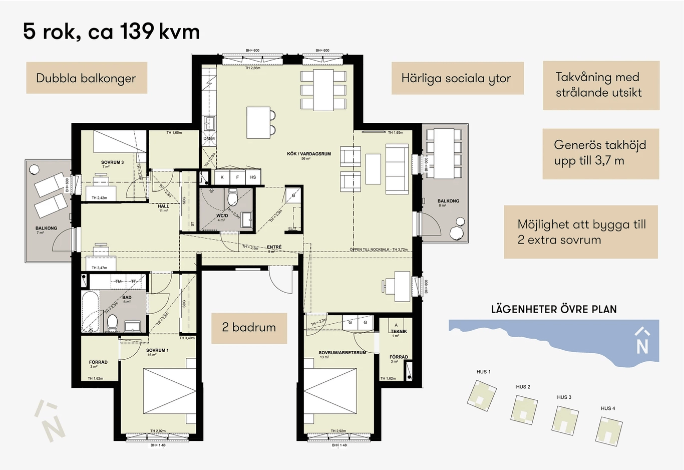 | 33-1401 | 4 | 5 rok | 142 kvm | 11 995 000 kr | 8 777 kr | Till salu |