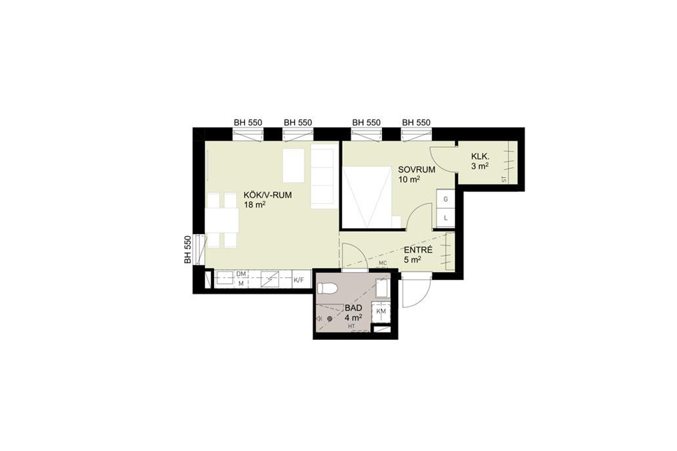 Välplanerad tvåa med fönster åt två håll. Vardagsrum och kök i öppen planlösning. Sovrummet rymmer en dubbelsäng och har garderober samt en klädkammare. Det fullutrustade badrummet nås från hallen.