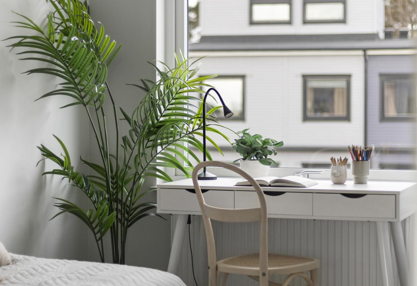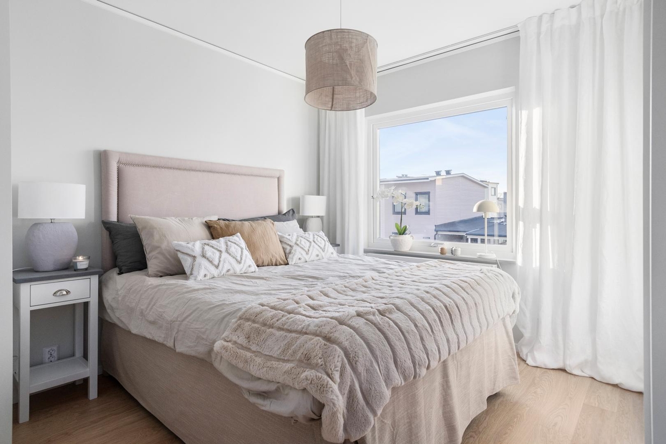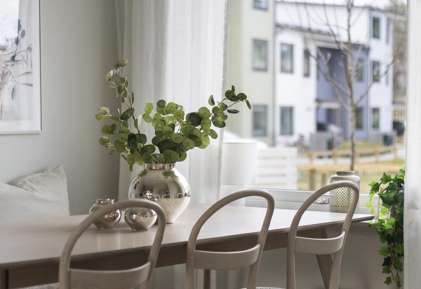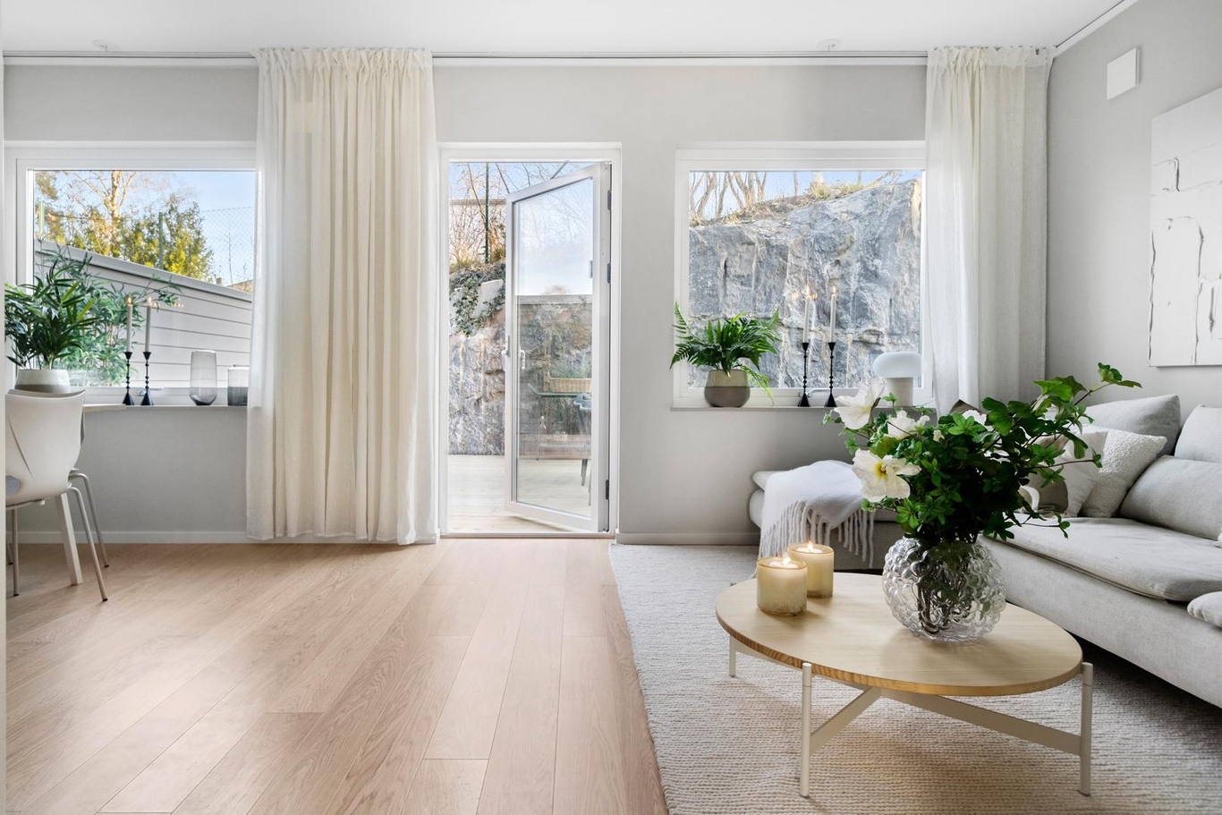 Med stora fönster, en härlig takterrass, vacker parkett och lugna väggfärger är det här ett hem där naturen och familjens vardag får plats.