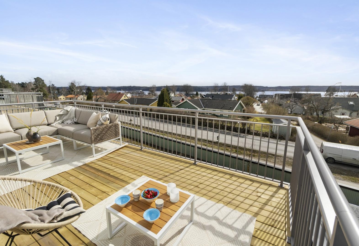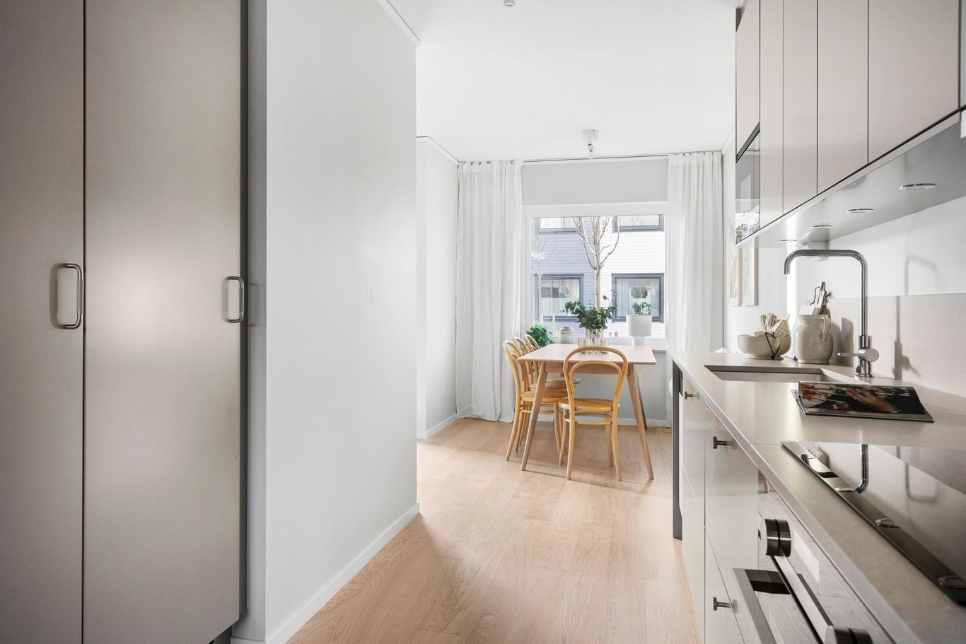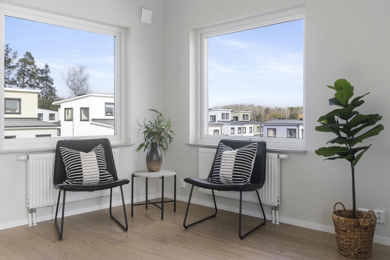 Välkommen till Brf Ekerövallen Sjösidan! Här väntar ett ljust och rymligt parhus i tre våningar med en fantastisk takterrass, flera mysiga sällskapsrum, tre sovrum och en solig altan – ett boende där hela familjen får plats!