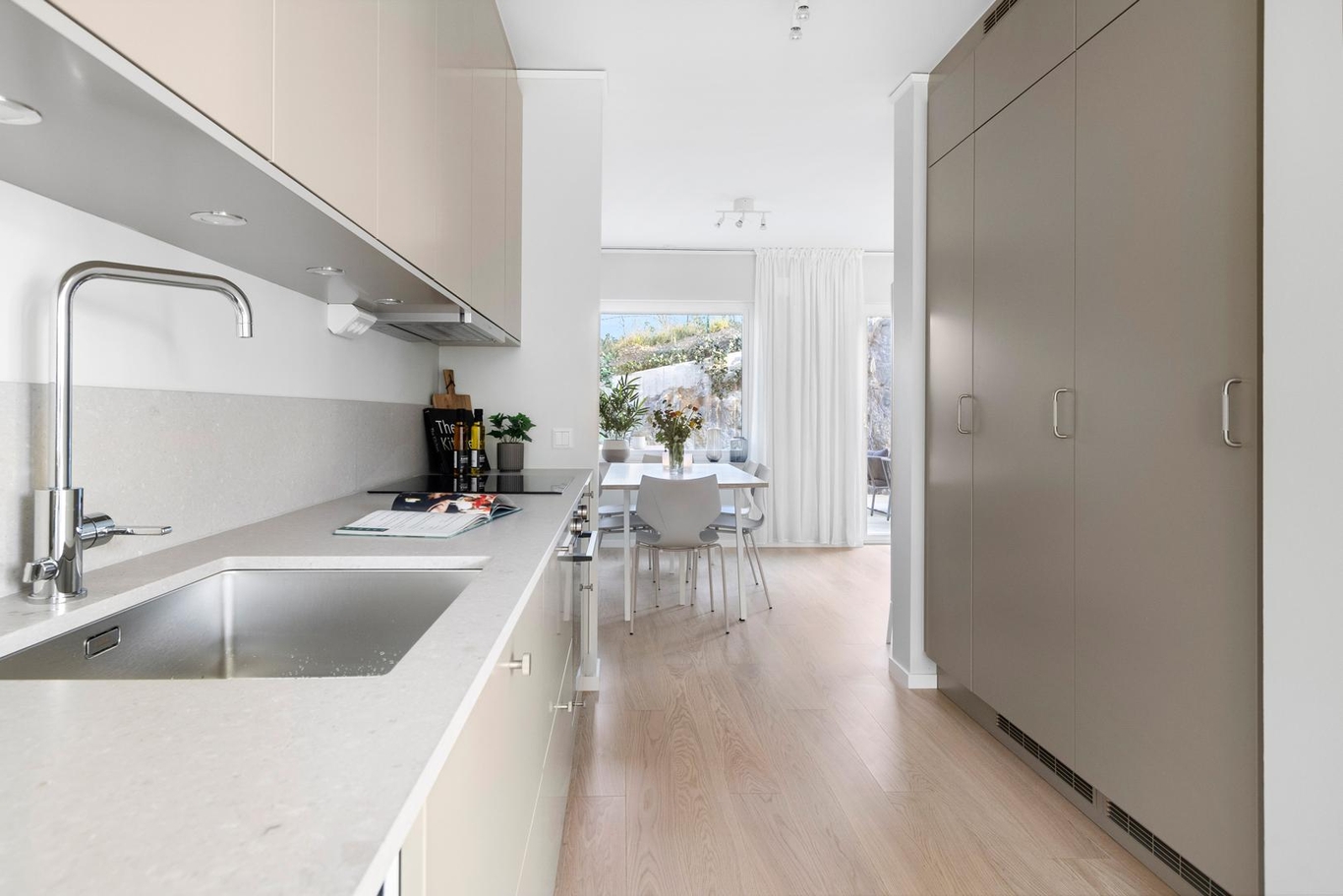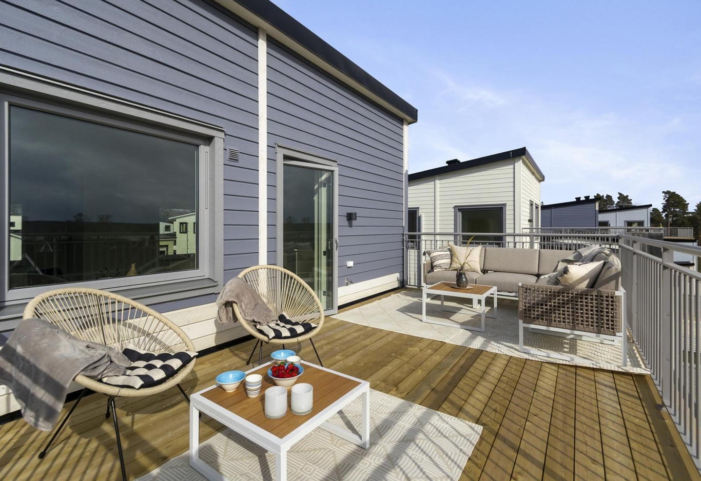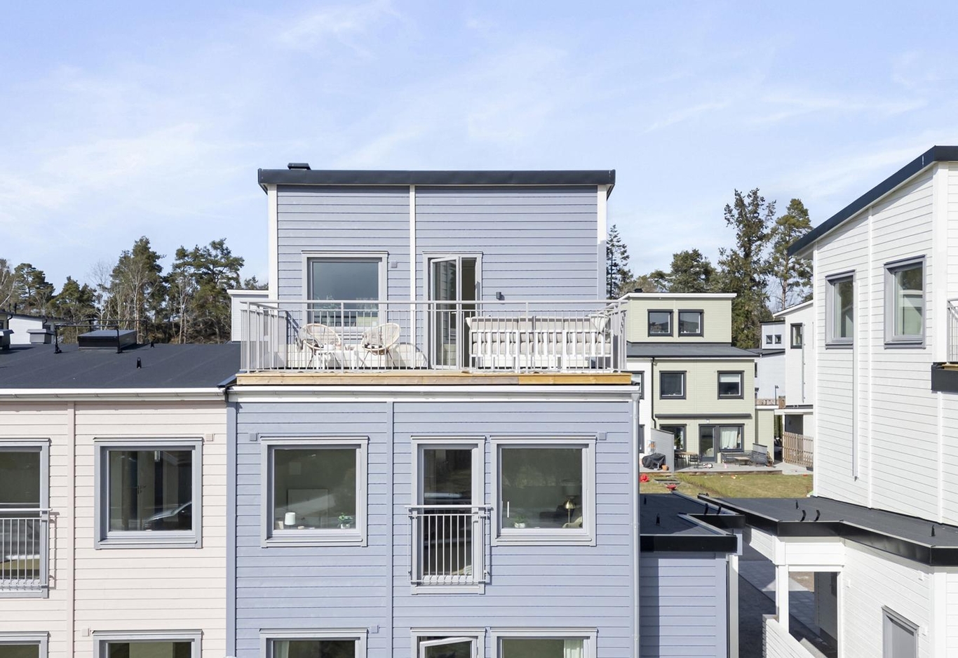 Välkommen till Brf Ekerövallen Sjösidan! Här väntar ett ljust och rymligt parhus i tre våningar med en fantastisk takterrass, flera mysiga sällskapsrum, tre sovrum och en solig altan – ett boende där hela familjen får plats!