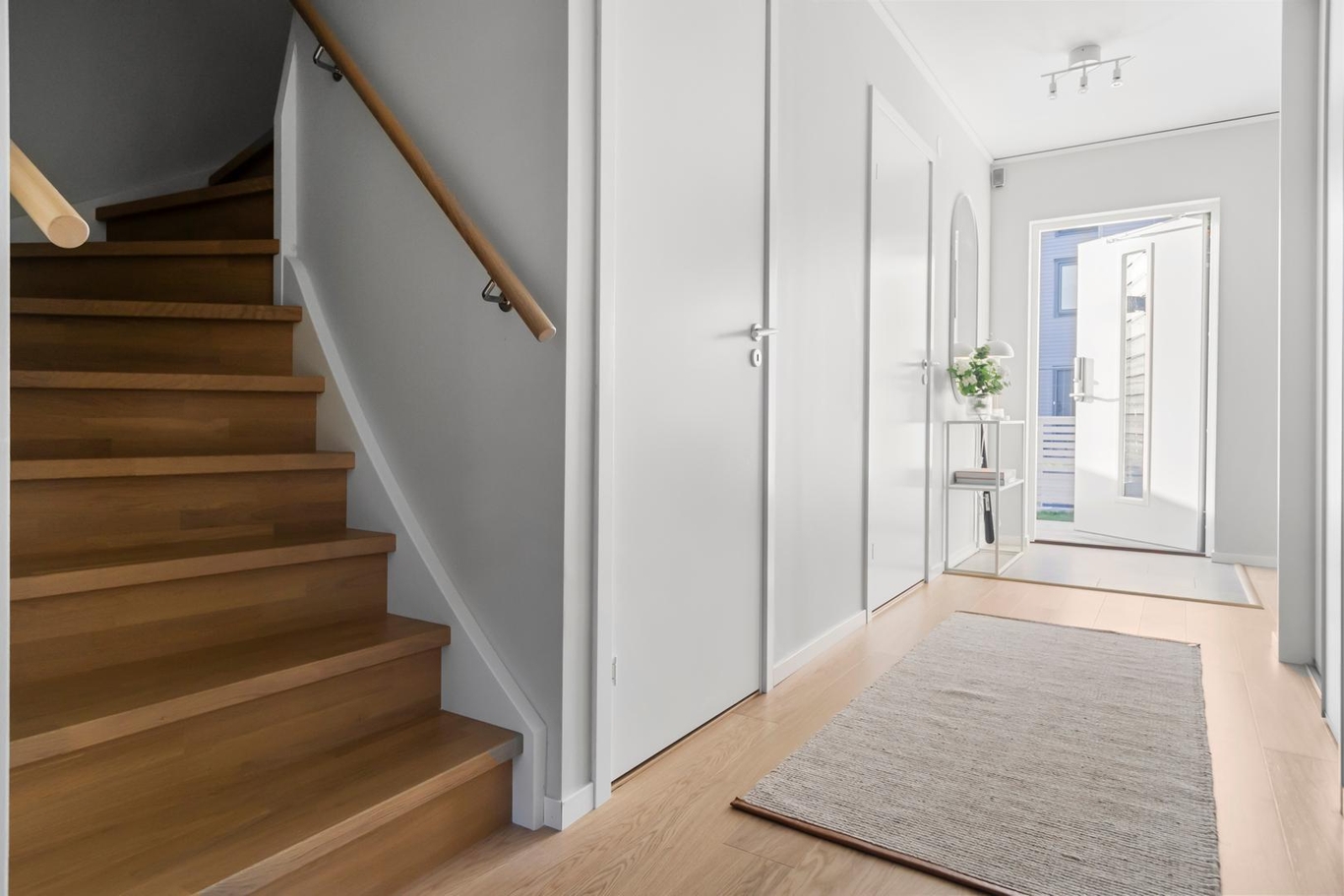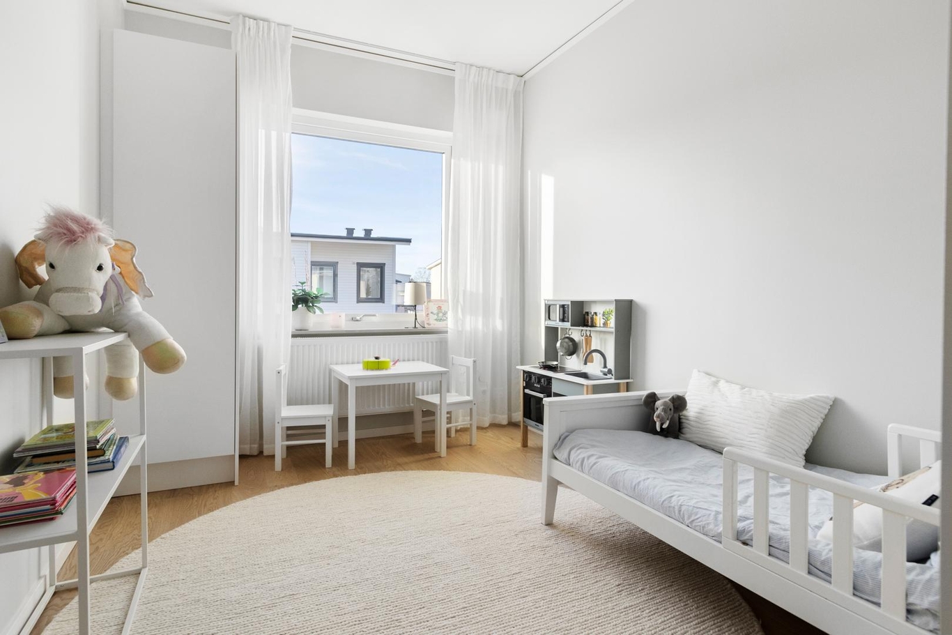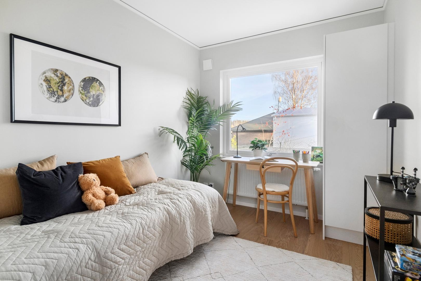 Bostaden är smart indelat för både umgänge och vila. Här har man satsat på en flexibel och ljus planlösning som gör det enkelt att möblera precis som ni vill. I huset finns två helkaklade fina badrum, och i ett av dem finns även tvättmöjligheter – praktiskt för barnfamiljen!