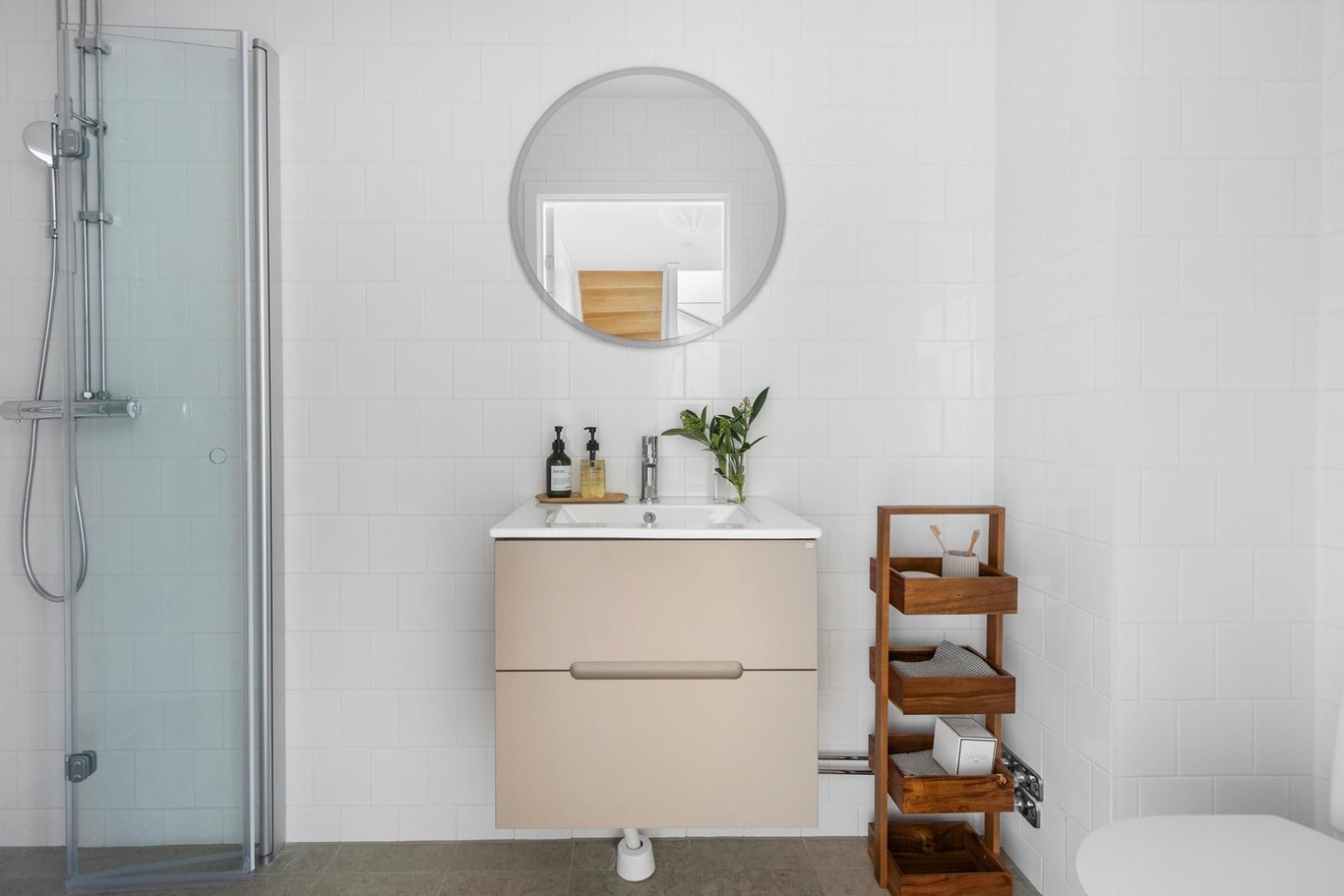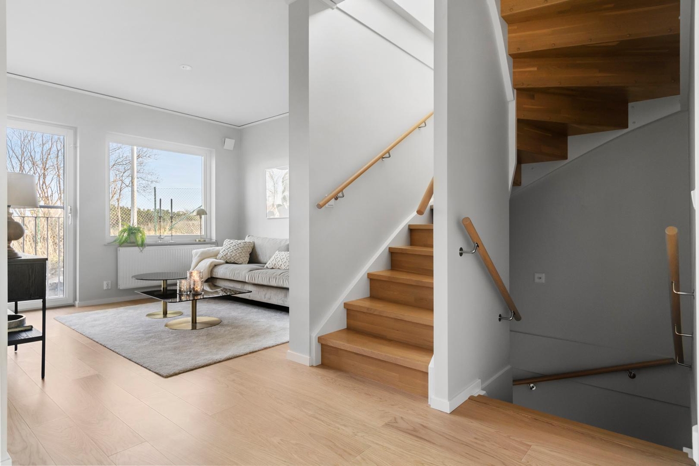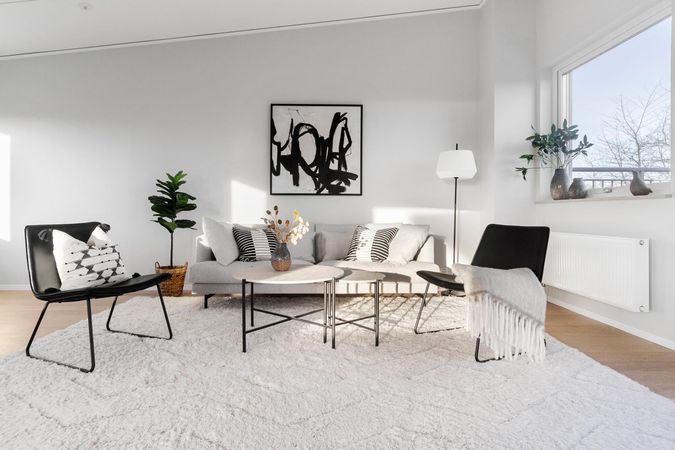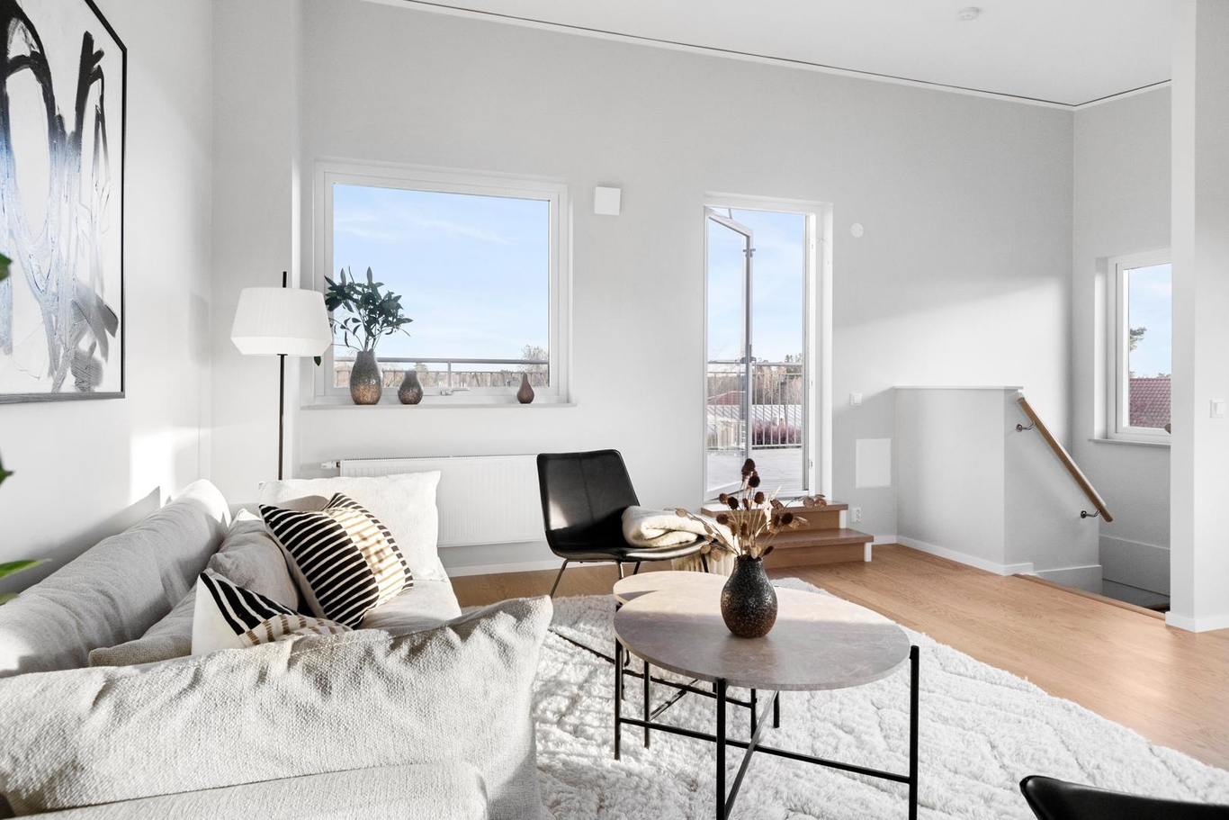 Bostaden är smart indelat för både umgänge och vila. Här har man satsat på en flexibel och ljus planlösning som gör det enkelt att möblera precis som ni vill. I huset finns två helkaklade fina badrum, och i ett av dem finns även tvättmöjligheter – praktiskt för barnfamiljen!