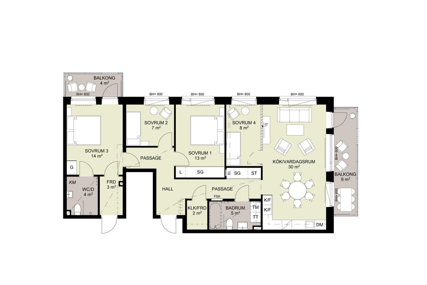 Med sina fem rum och kök erbjuder den gott om plats för familj och vänner att samlas och trivas. Den öppna planlösningen ger en känsla av rymd och ljus samtidigt som den skapar en harmonisk atmosfär där du kan koppla av och njuta av vardagen. En av de bästa funktionerna med denna lägenhet är de två balkongerna samt möjligheten att själv skapa en egen uthyrningsdel.
