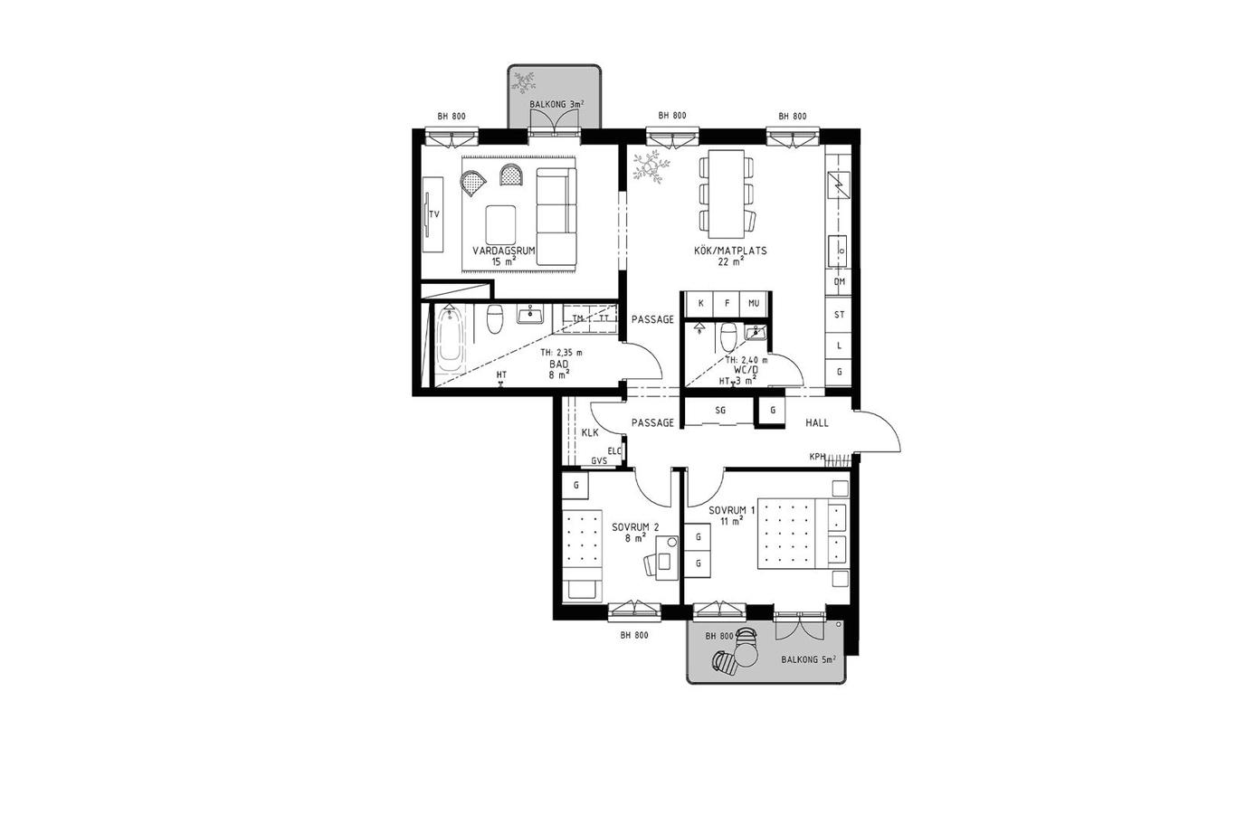 | 11-1504 | 5 | 3 rok | 73 kvm | 7 895 000 kr | 5 443 kr | Reserverad |