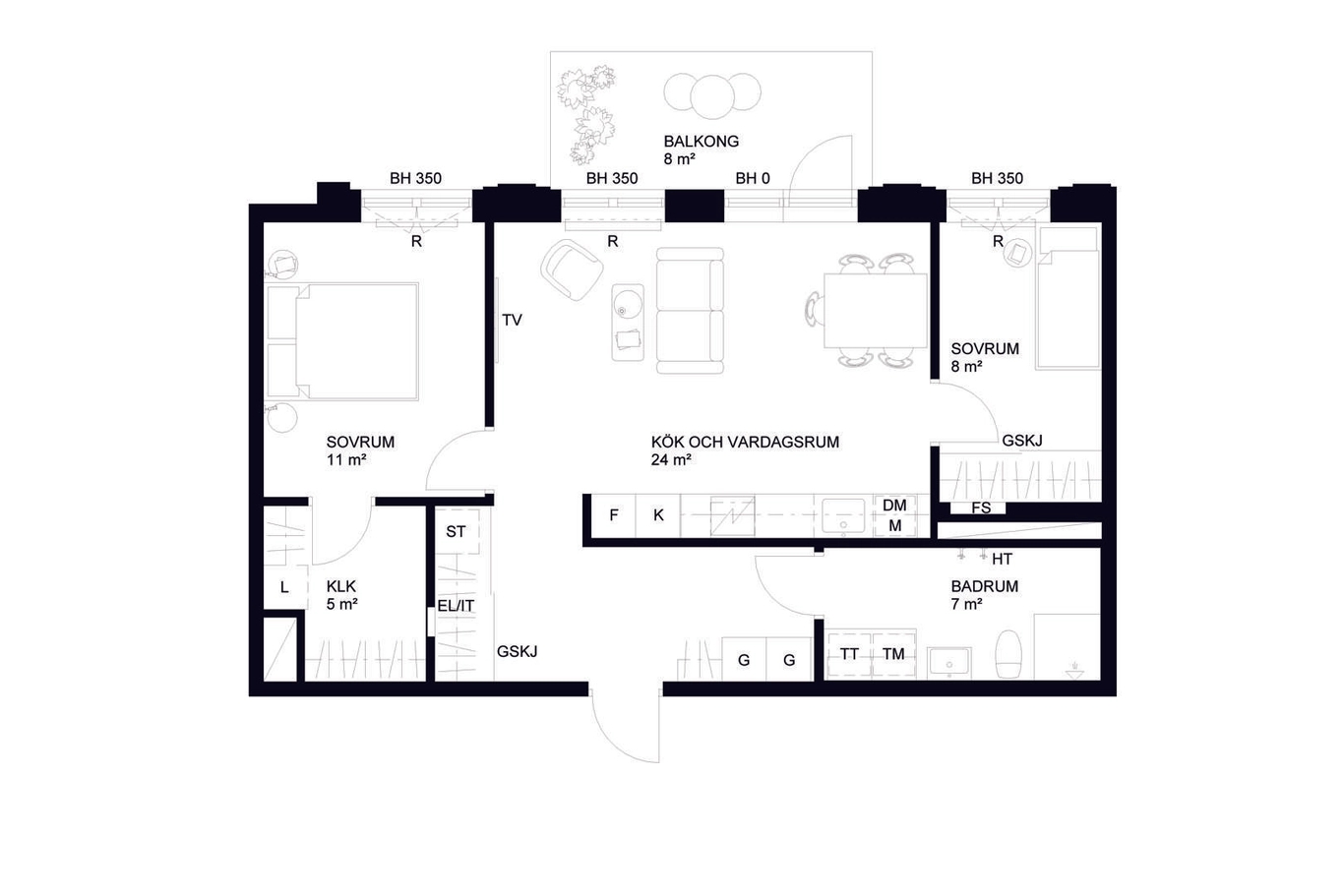 | 11-1101 | 1 | 3 rok | 72 kvm | 5 895 000 kr | 5 185 kr | Till salu |