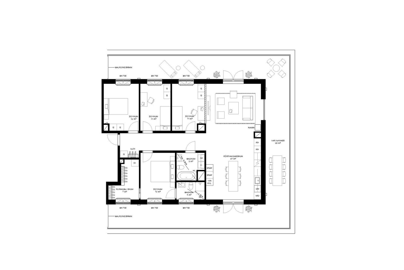 Penthouse om 5 rok, 127 kvm, belägen på nionde våningen med braskamin, vinkyl och 90 kvm längsgående takterrass i tre väderstreck! Ca 2,68 m i takhöjd. Kök och vardagsrum i gavelläge med dubbla terrassdörrar. Fyra sovrum, varav master bedroom med en-suit bathroom och walk-in closet. Två badrum, varav det gemensamma med badkar, TM och TT.