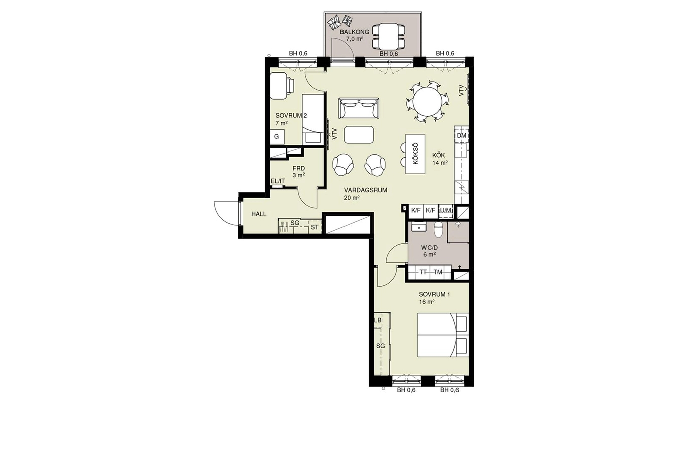 | 11-1301 | 3 | 2 rok | 74 kvm | 7 895 000 kr | 5 125 kr | Till salu |