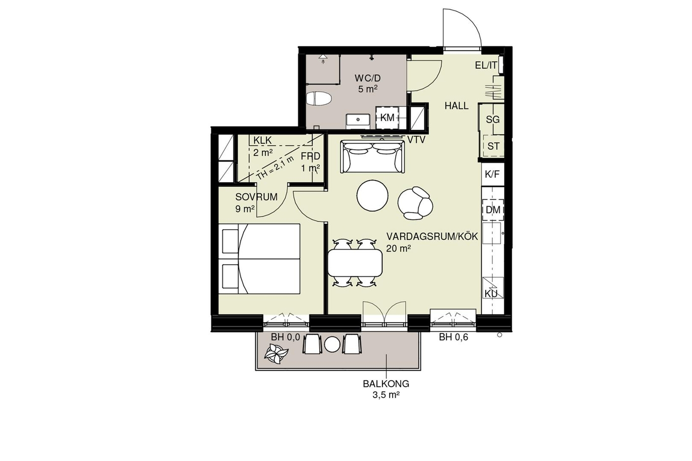 | 12-1504 | 5 | 2 rok | 42 kvm | 4 995 000 kr | 3 747 kr | Till salu |