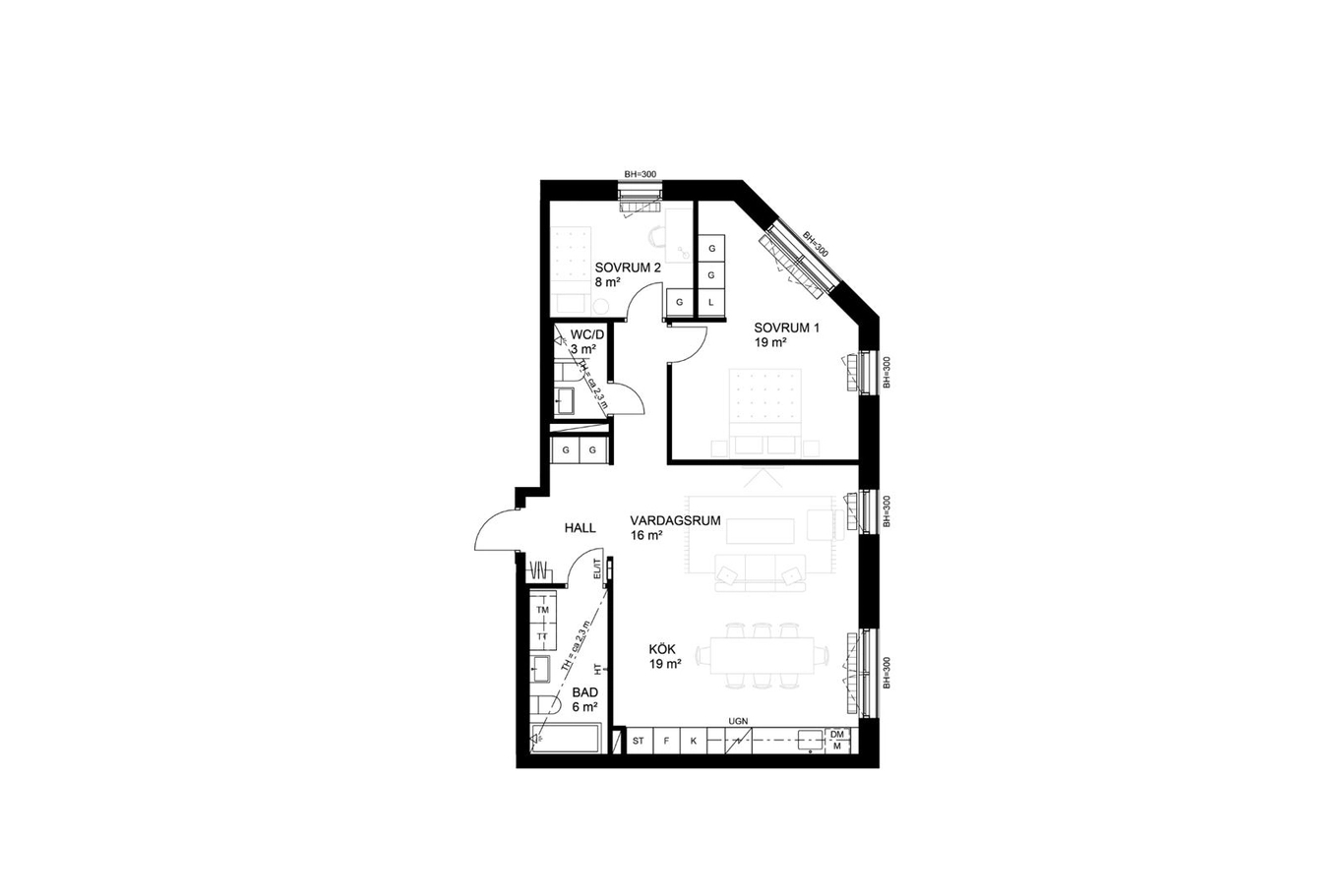 | 2-1202 | 2 | 1 rok | 34 kvm | 3 295 000 kr | 3 017 kr | Till salu |