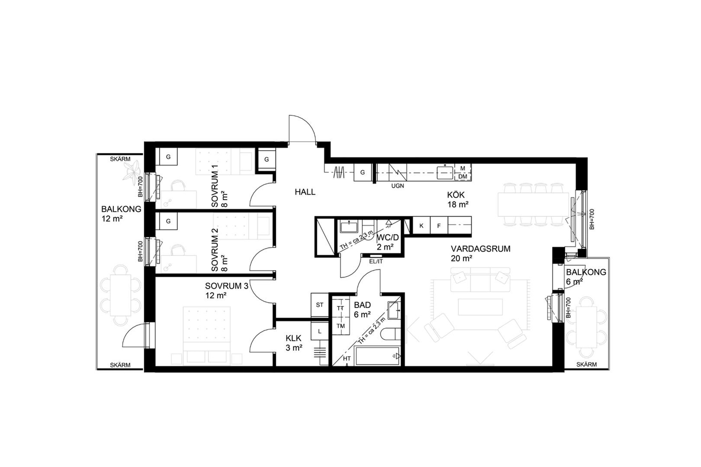 | 2-1201 | 2 | 2 rok | 47 kvm | 4 145 000 kr | 3 751 kr | Till salu |