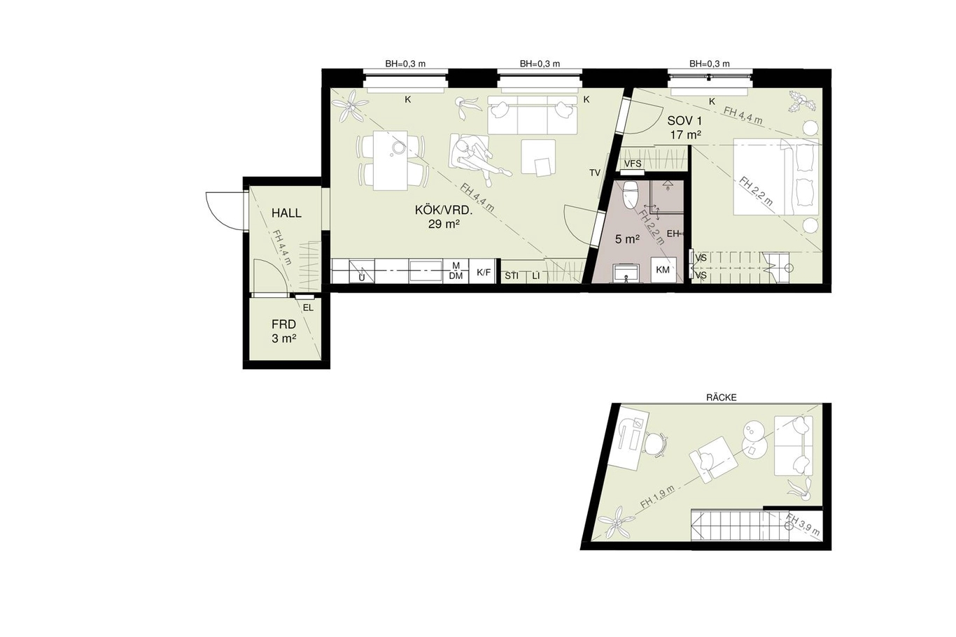 | 1-1305 | 3 | 2 rok | 33 kvm | 2 595 000 kr | 2 748 kr | Till salu |