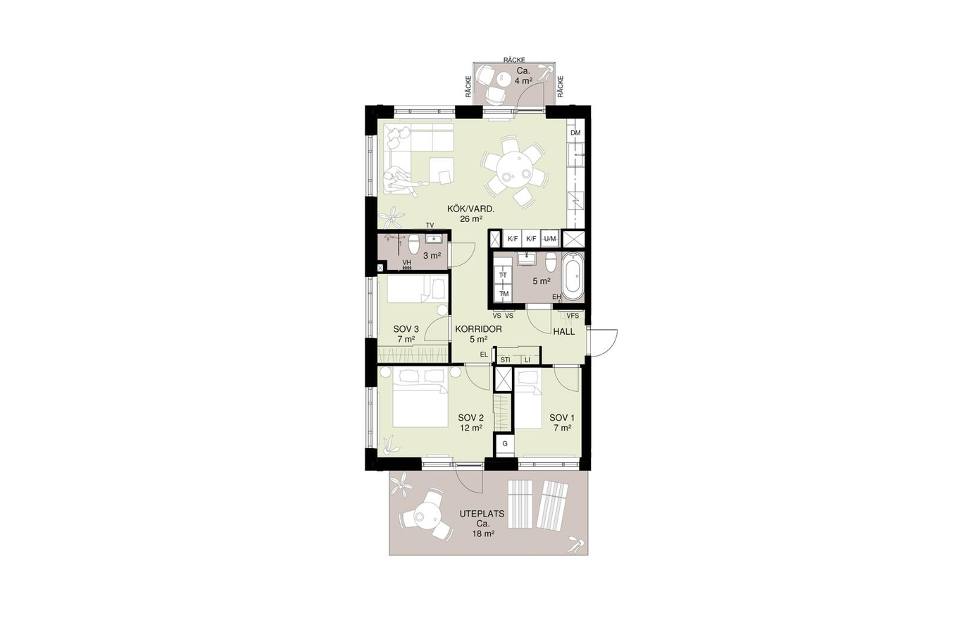- Tre välplanerade sovrum