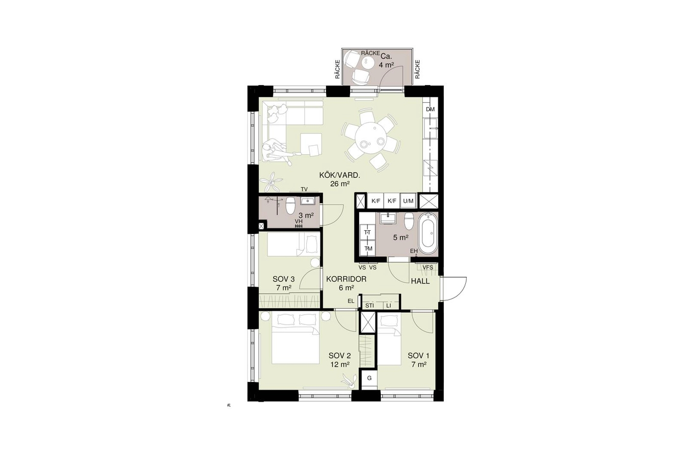 | 5-1301 | 3 | 4 rok | 85 kvm | Såld | ||