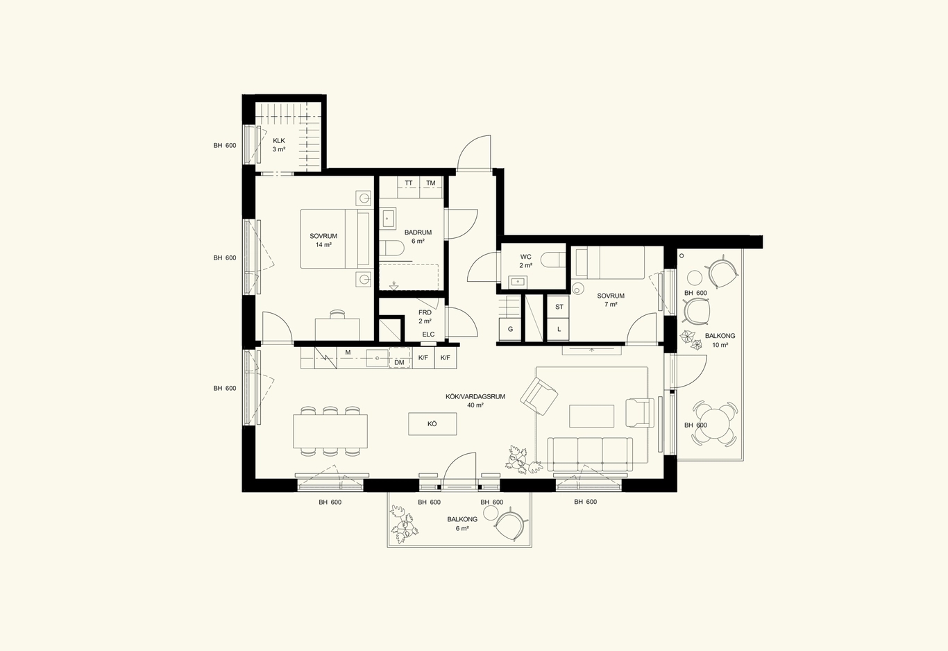 Att bo bra handlar inte bara om kvadratmeter, det handlar om hur ett hem får oss att må. I det här kvarteret är bostäderna planerade med just det i åtanke: att vardagen ska kännas enkel, ljus och naturlig. Oavsett om du bor i en mindre 2:a, en större 5:a eller ett av radhusen är rummen formade för att du ska kunna leva ditt liv utan att hemmet begränsar dig.