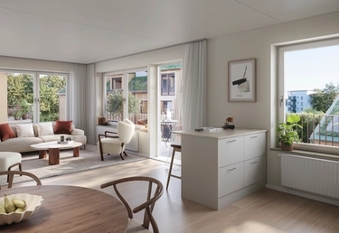 Lägenheterna är ljusa och öppna, med planlösningar som passar olika hushåll och livssituationer. Balkonger, terrasser och uteplatser fångar solen och utsikten, vilket ger varje bostad sin egen kvalitet.
