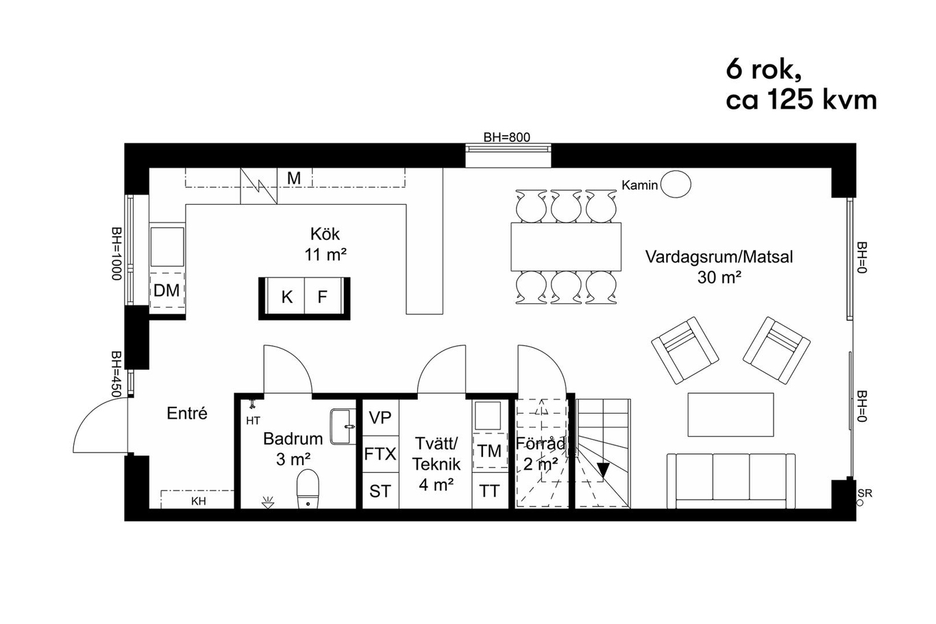 Det öppna köket och vardagsrummet erbjuder en social yta där du kan njuta av både matlagning och umgänge med familj och vänner. Den vackra braskaminen är strategiskt placerad och kan avnjutas från både kök, vardagsrum och matplats, vilket skapar en härlig atmosfär under kalla vinterdagar.