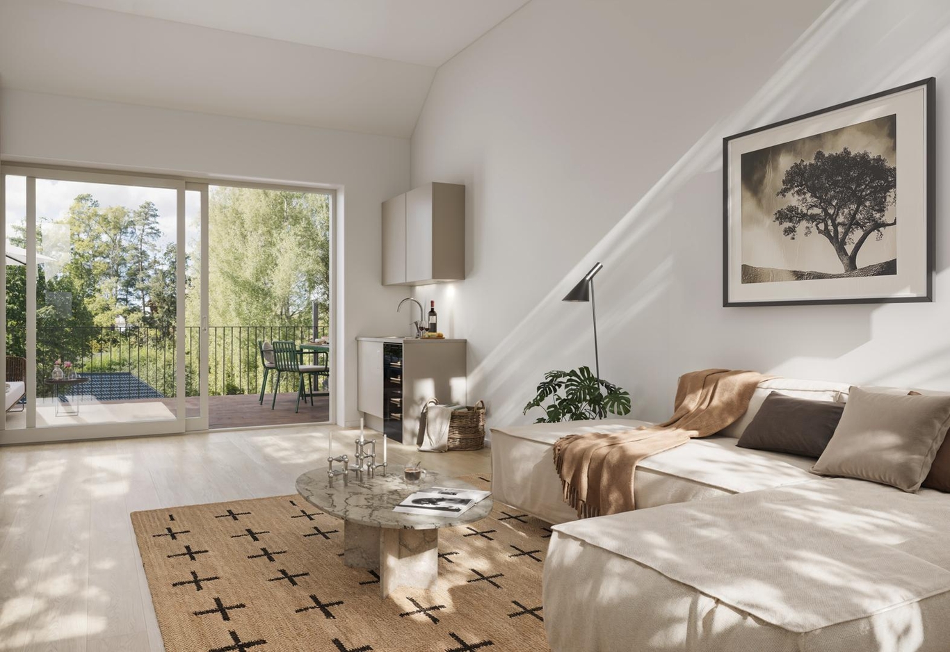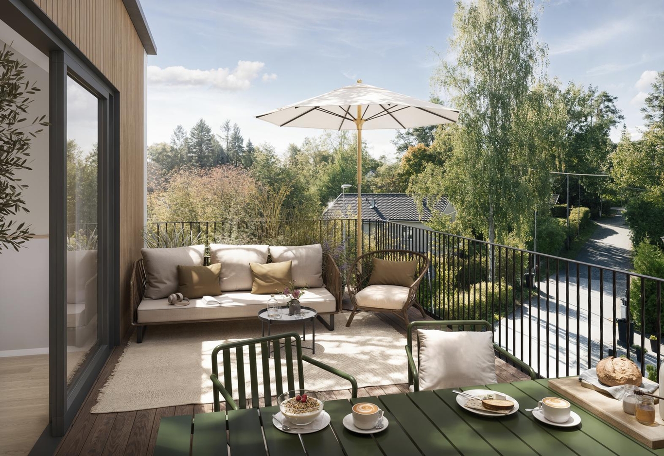 Utanför hittar du en skyddad uteplats där du kan njuta av lugna stunder och umgås i en privat och trivsam miljö.