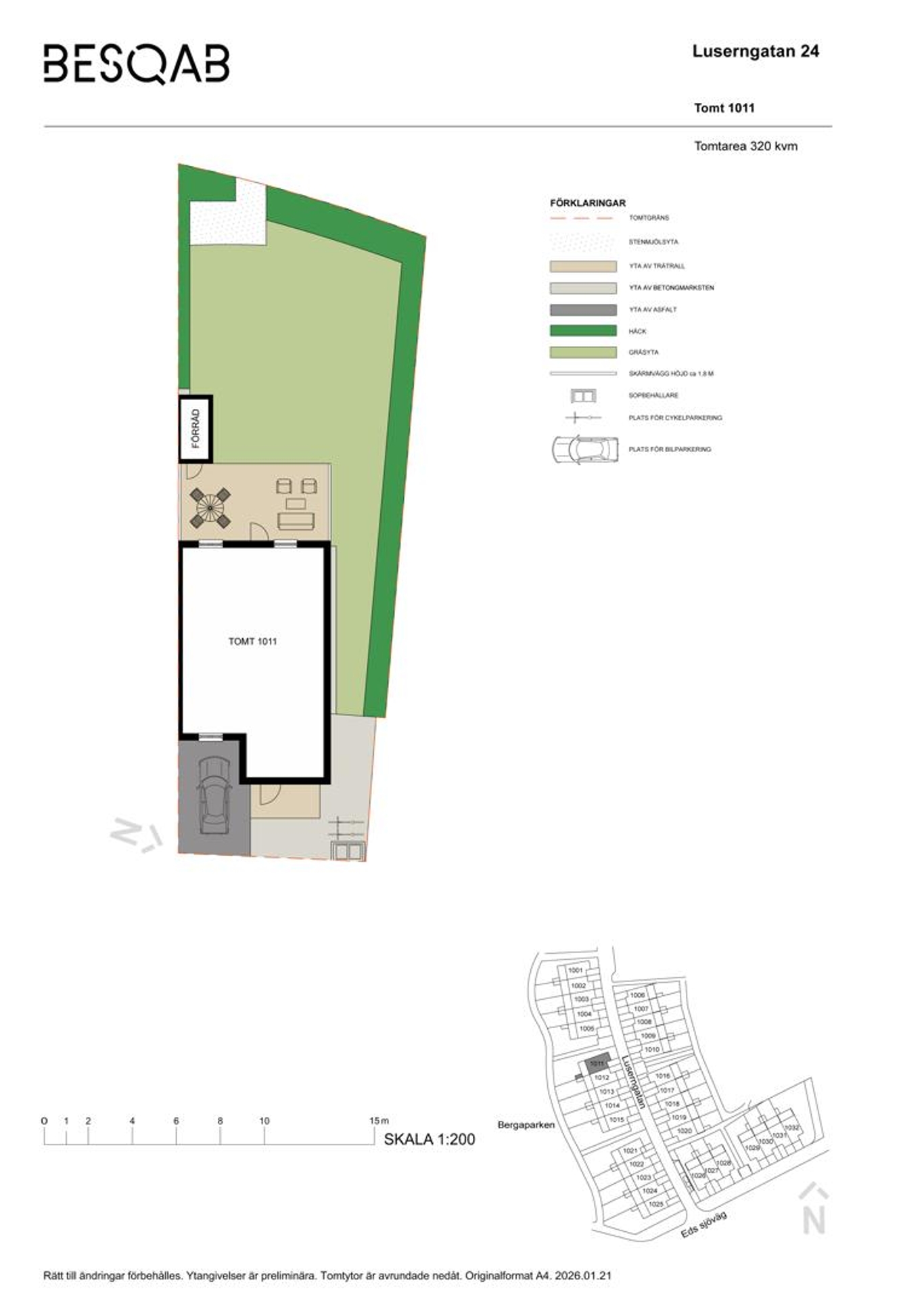 Uteplatsen med fint västerläge vetter mot ett parkområde och tomten på gaveln är en av de största på ca 320 kvm. Det är här du kan skapa minnen för livet, mitt i en miljö som bjuder på både lugn och livskvalitet.