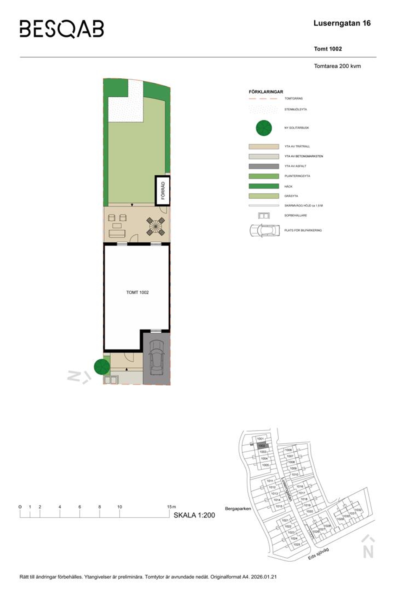 Uteplatsen har sol större delen av dagen och ligger med ett härligt ostört läge mot den gröna parken. Njut av en egen grästäppa perfekt för lek, middagar och lugna stunder.