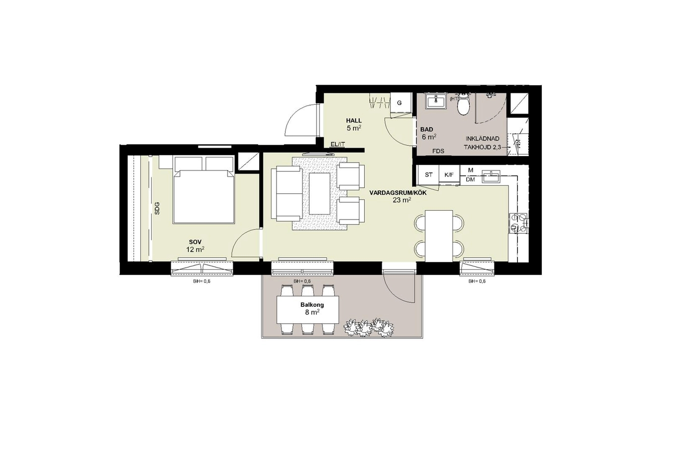 | 43-1203 | 2 | 4 rok | 96 kvm | 6 695 000 kr | 6 553 kr | Till salu |