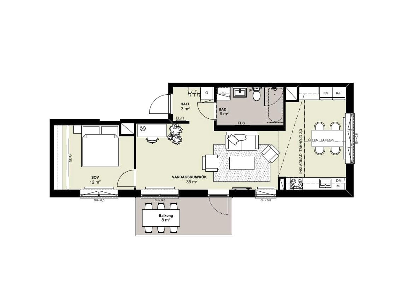 | 43-1102 | 1 | 2 rok | 43 kvm | 2 995 000 kr | 3 751 kr | Till salu |