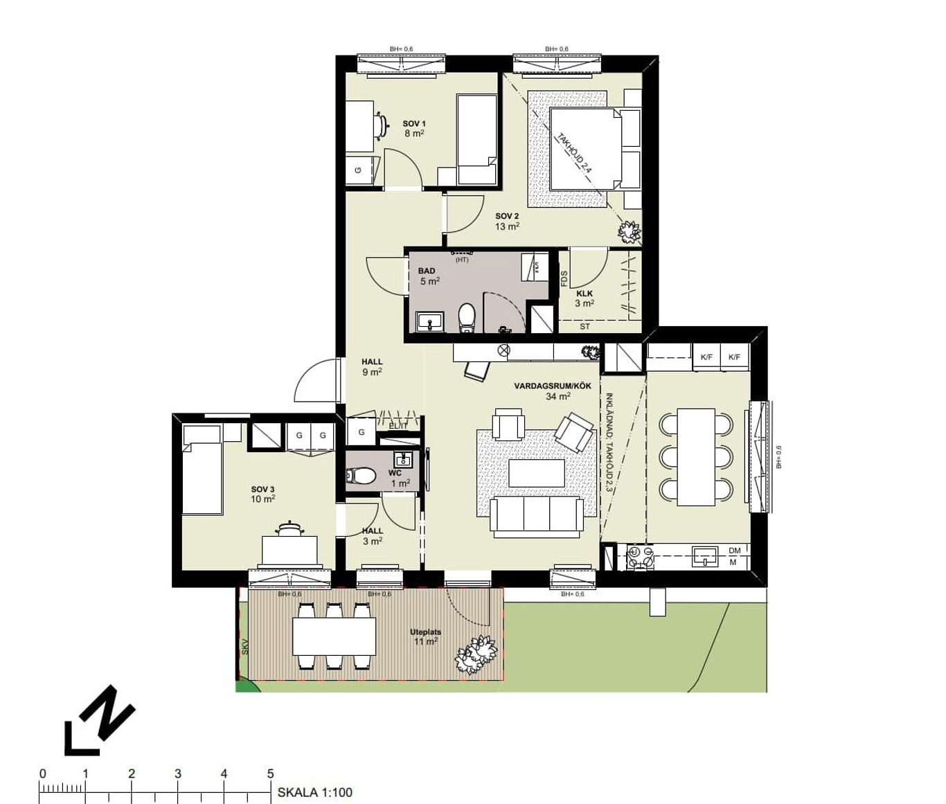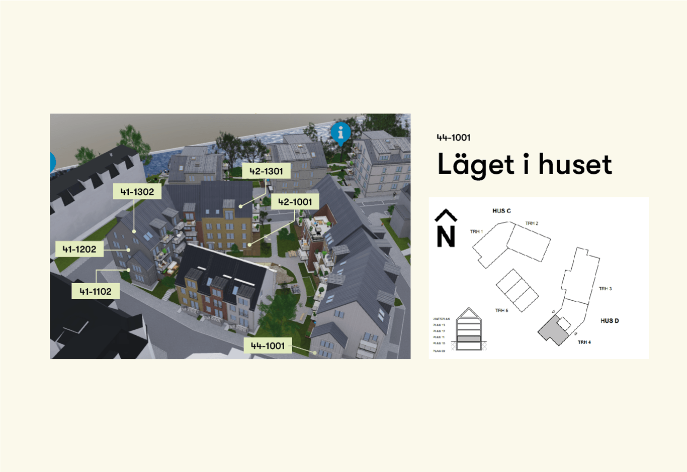 | 43-1101 | 1 | 4 rok | 88 kvm | 4 795 000 kr | 6 192 kr | Till salu |