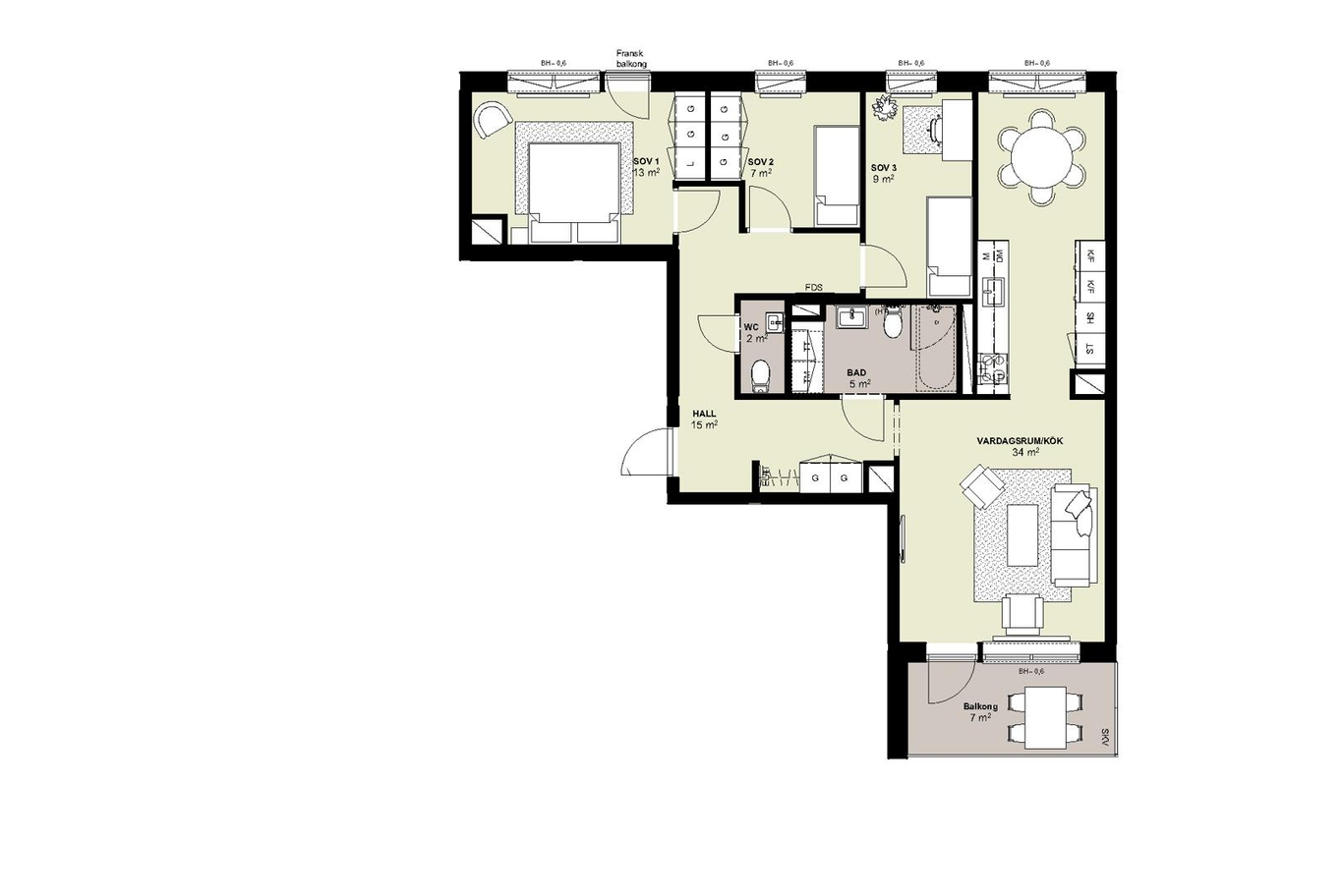 - Alternativ planlösning finns - välj mellan 3 rok eller 4 rok
