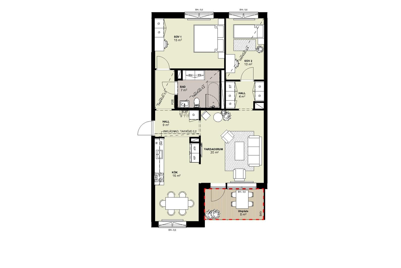 | 43-1201 | 2 | 4 rok | 88 kvm | 4 995 000 kr | 6 192 kr | Till salu |