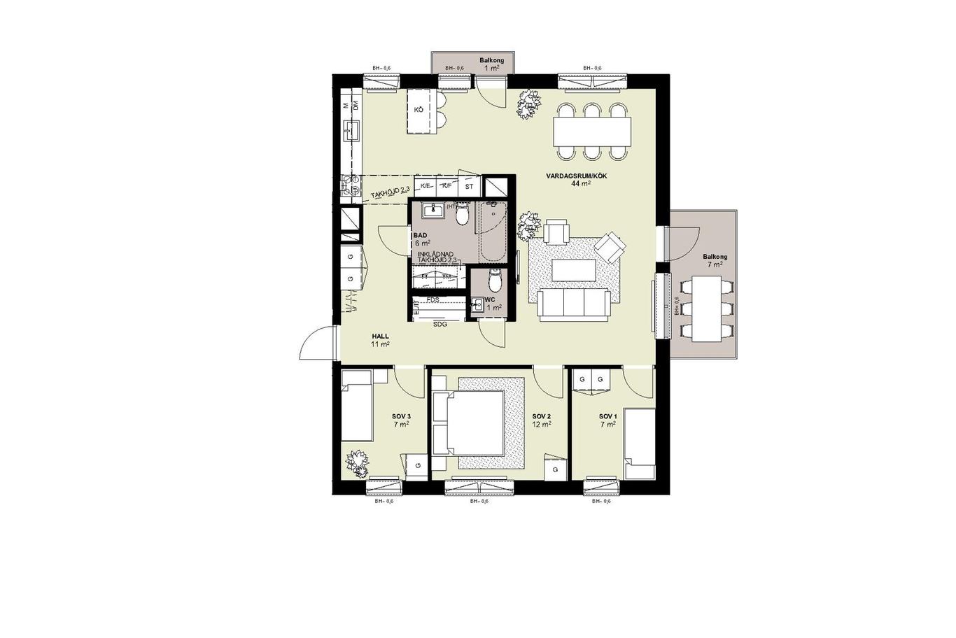| 43-1203 | 2 | 4 rok | 96 kvm | 6 695 000 kr | 6 553 kr | Till salu |