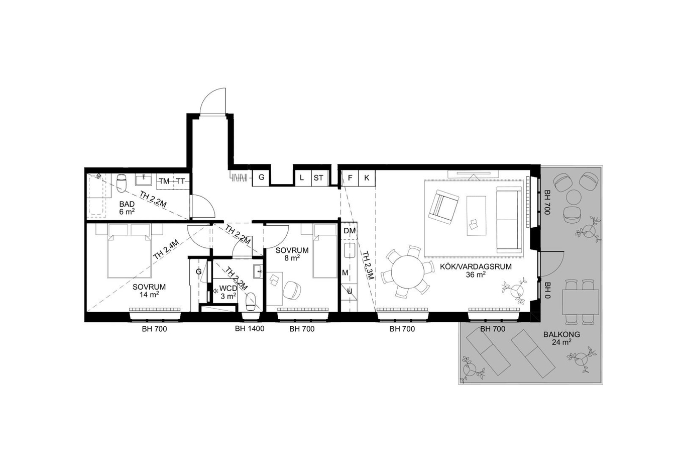 - Hörnbalkong om ca 24 kvm