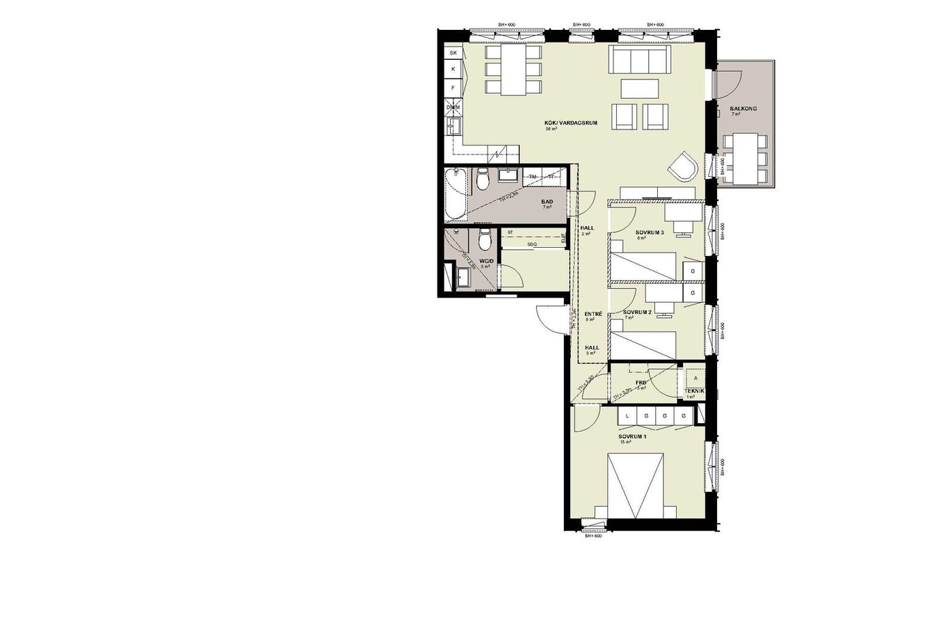 - Generösa sociala ytor som kompletteras med balkongen