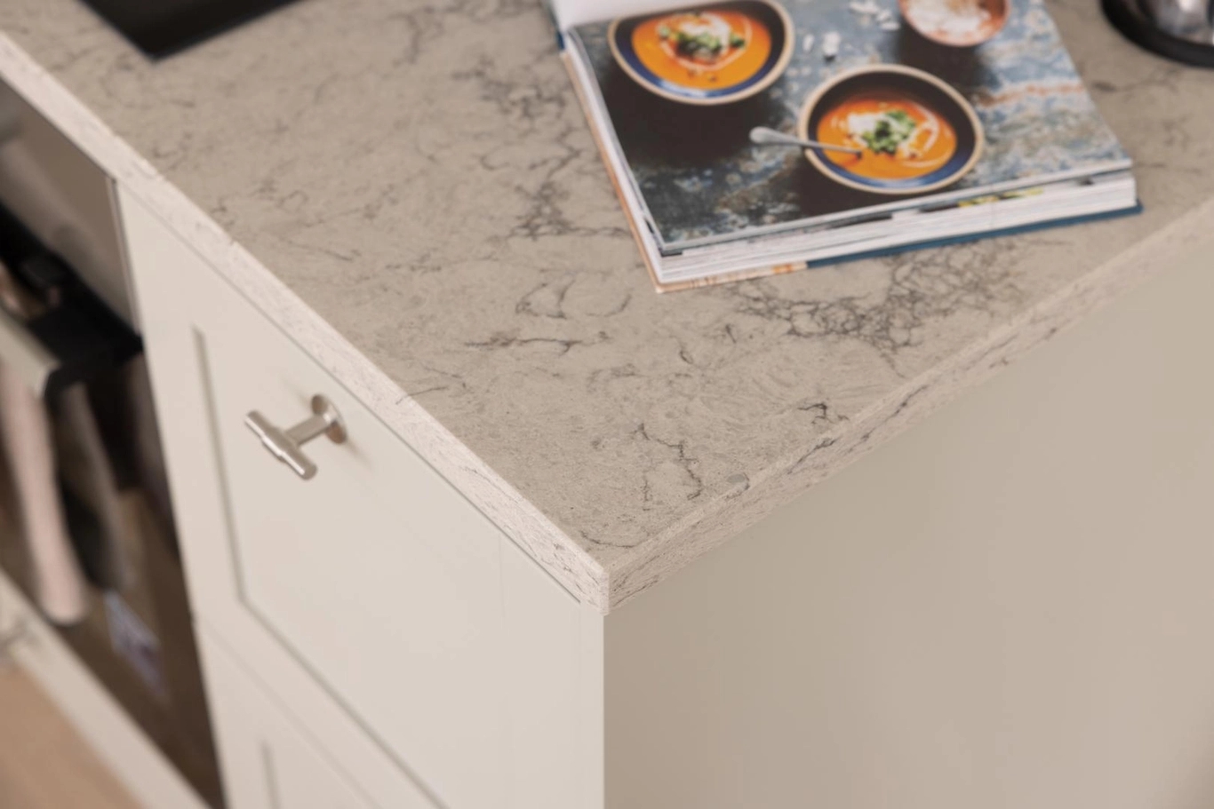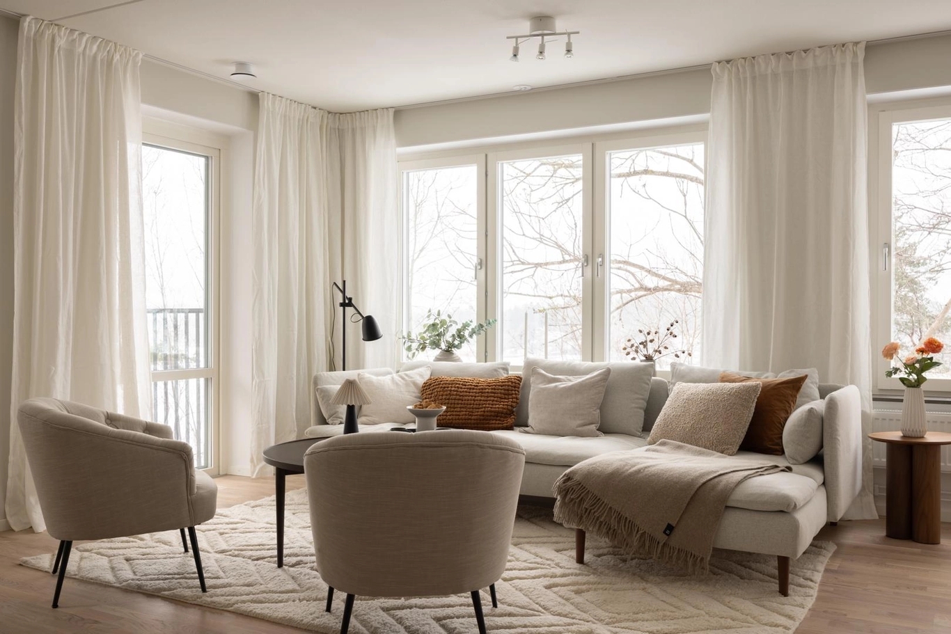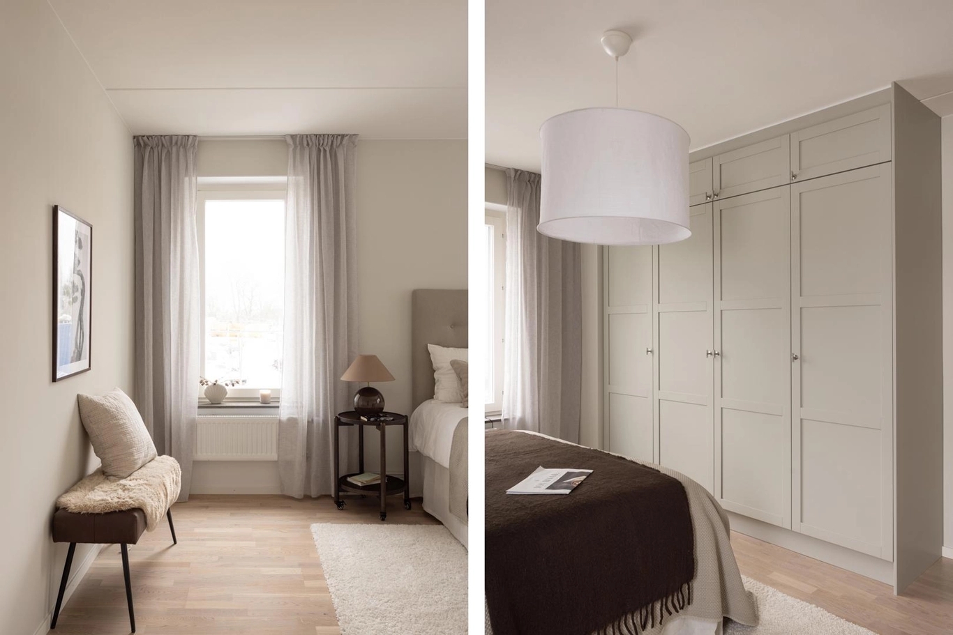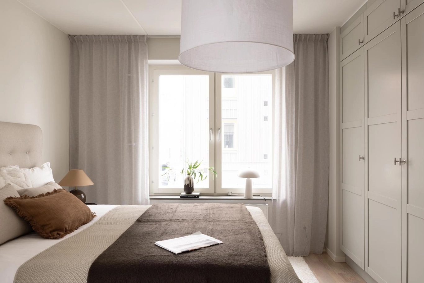 Här är inte bara utsikten något alldeles extra utan även materialvalen. Materialval, färger och design är omsorgsfullt framtagna för att bejaka känslan av luft, rymd och hav. Kökets form och design är klassisk, med stilrena ramluckor för ett ombonat, men samtidigt genomtänkt uttryck. Bänkskivan i sten harmoniserar med luckornas varmgrå färg ackompanjerad av en lägre list för att bevara känslan av rumslighet. Vitvarorna är rostfria och diskmaskinen integrerad bakom en kökslucka. Köket är från Vedum och vitvarorna från Electrolux med matchande kvalitetsblandaren Mmix från Mora. I badrummen finns plats för vila och återhämtning, som det varmgrå kaklet varsamt reflekterar. Linnebeige lucka med ram för ett klassiskt och möblerat intryck adderar till mysfaktorn.