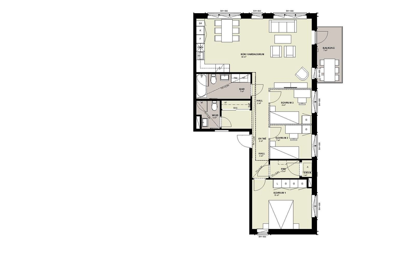 | 33-1101 | 1 | 4 rok | 98 kvm | 7 495 000 kr | 6 650 kr | Till salu |
