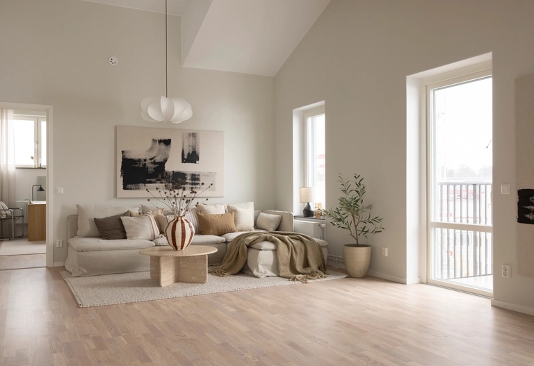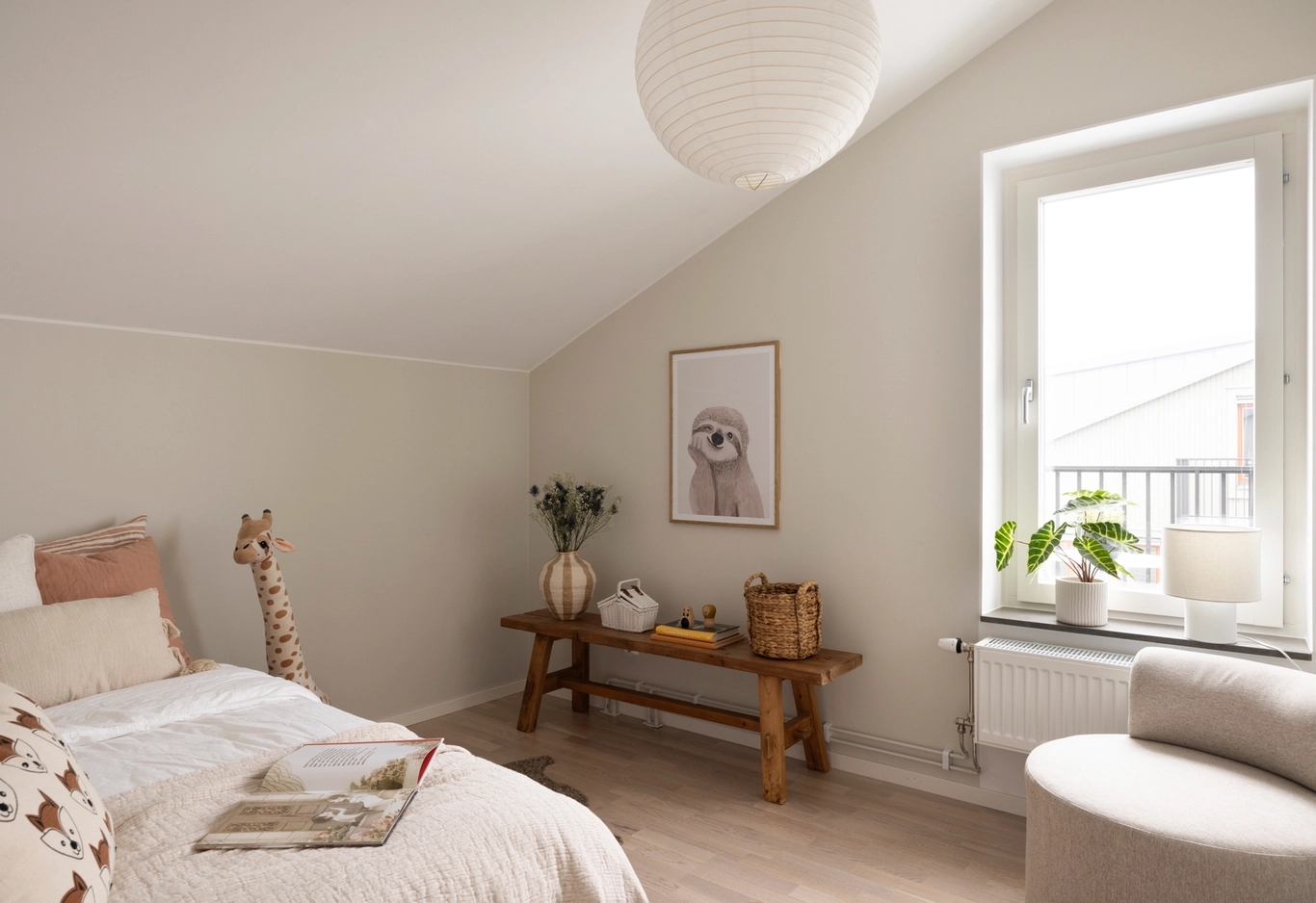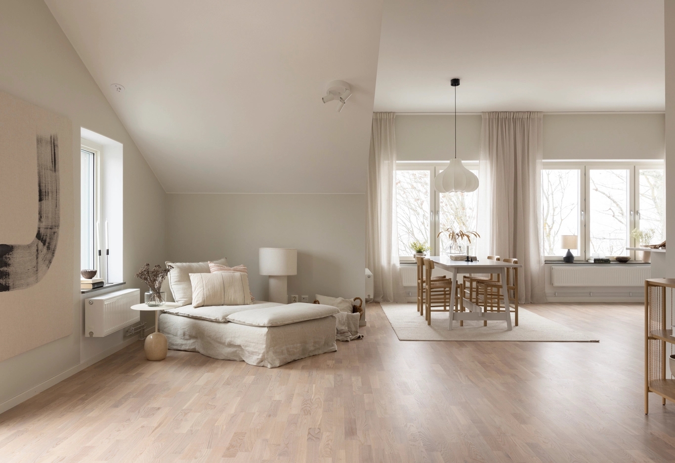 Den här taklägenheten behöver upplevas på plats. Den enastående utsikten över vattnet och den imponerande takhöjden på 3,70 meter gör sig egentligen först rättvisa när man kliver in – och framkallar ett spontant wow. Snedtaket tillför charm och karaktär, medan sjöutsikten blir en vacker fond som följer bostaden genom rummen.