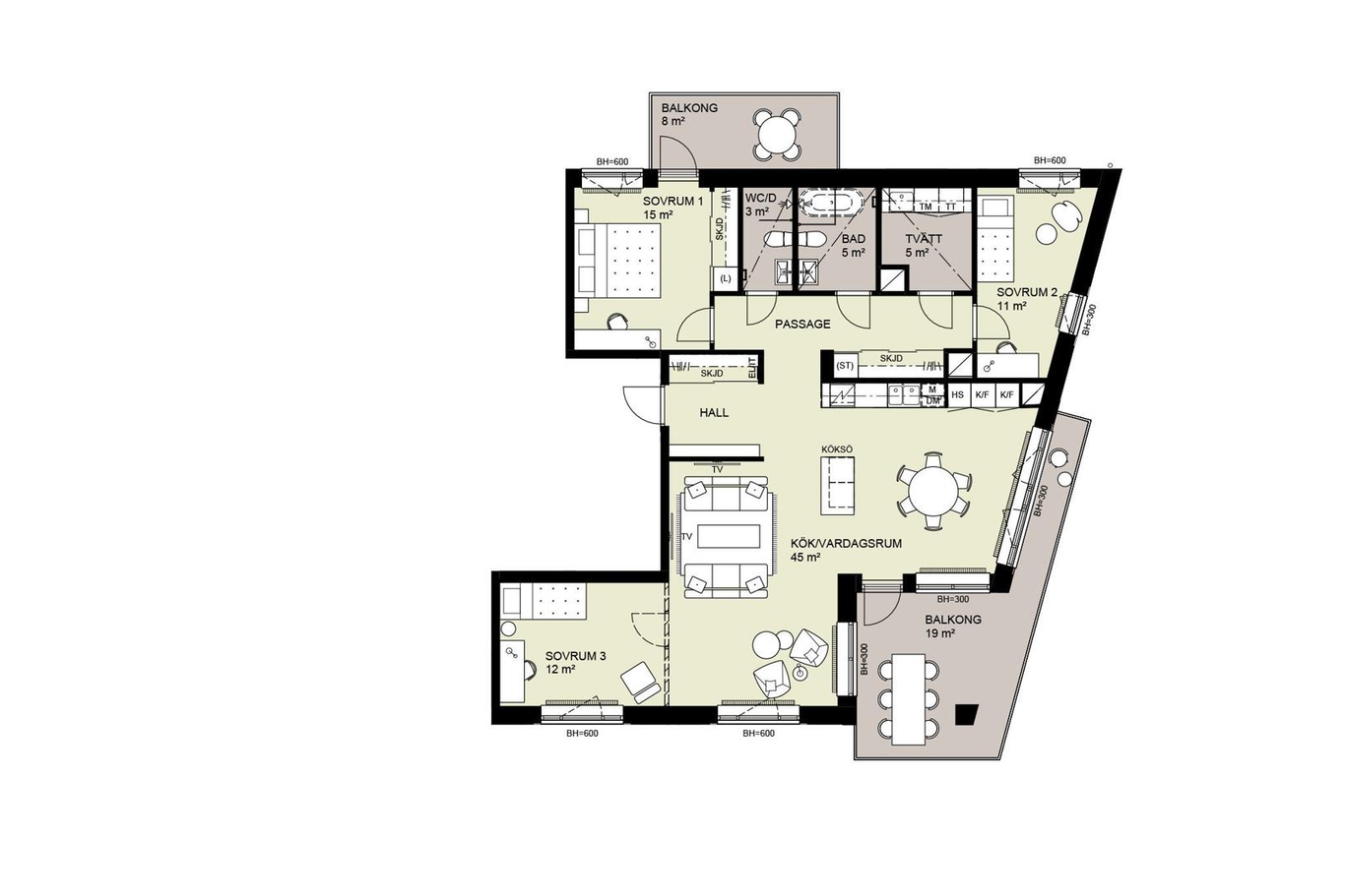 | 13-1302 | 3 | 3 rok | 85 kvm | 5 095 000 kr | 5 888 kr | Till salu |