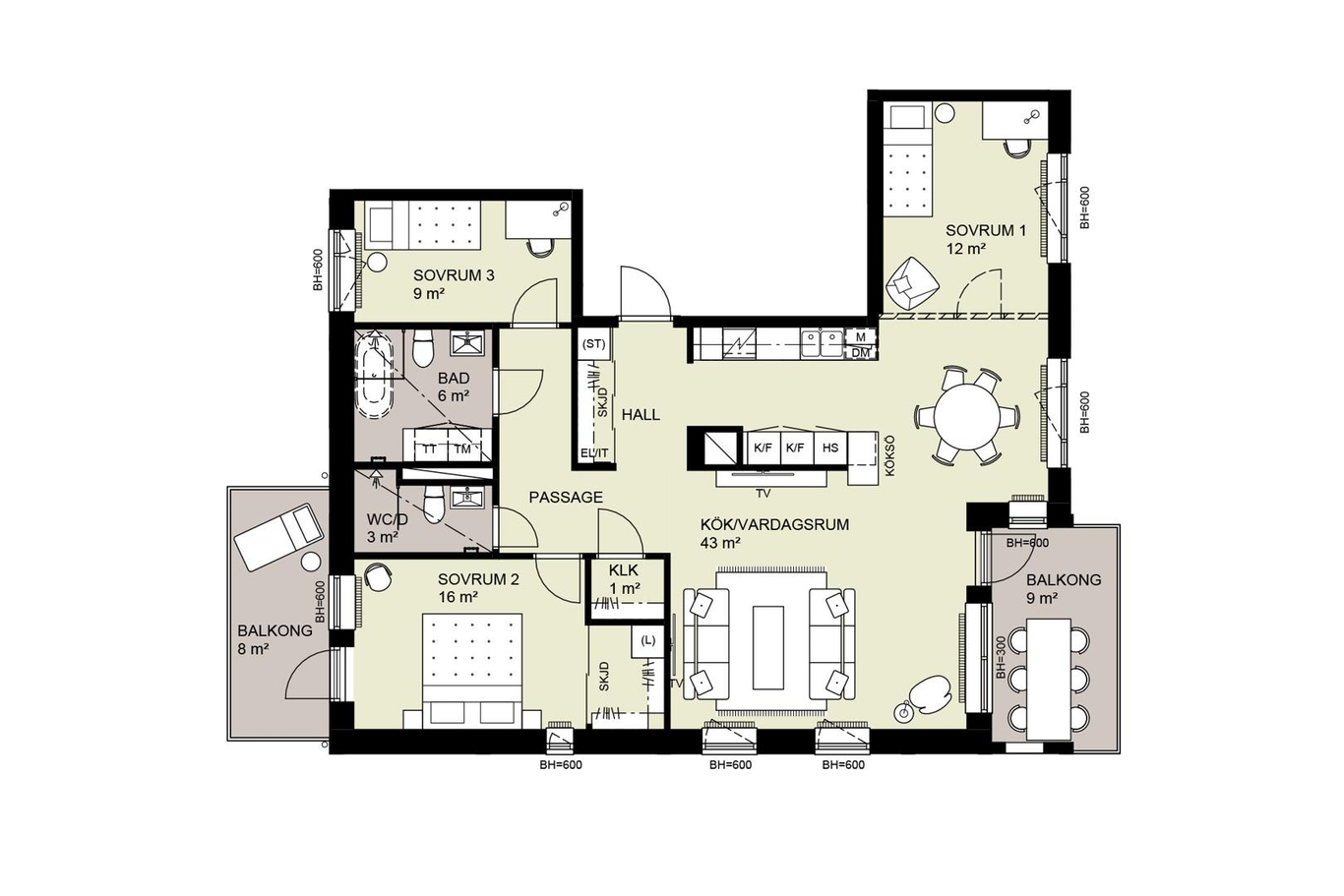 | 11-1101 | 1 | 3 rok | 84 kvm | 4 795 000 kr | 5 844 kr | Till salu |
