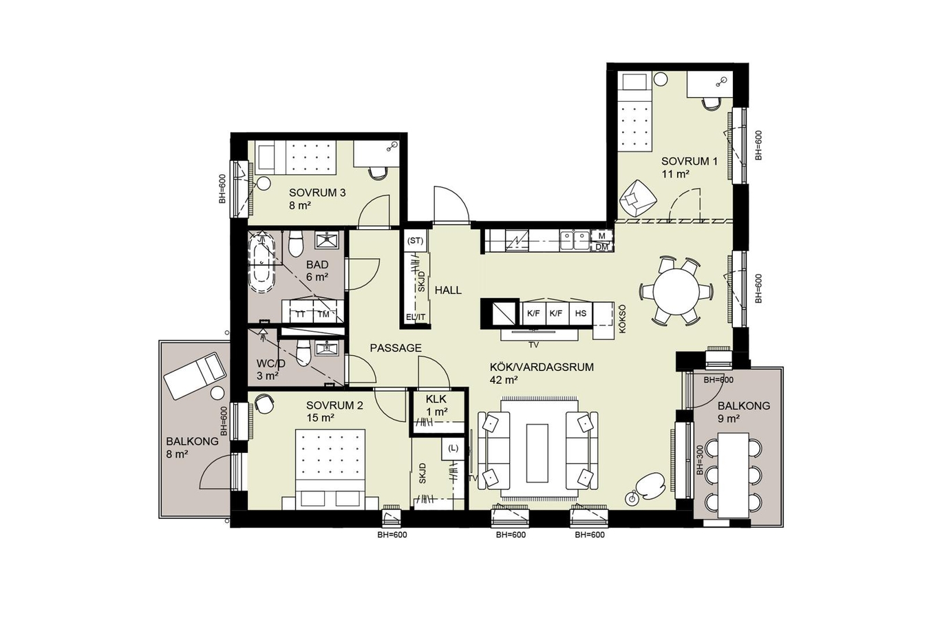 | 13-1201 | 2 | 4 rok | 107 kvm | 6 395 000 kr | 7 022 kr | Till salu |
