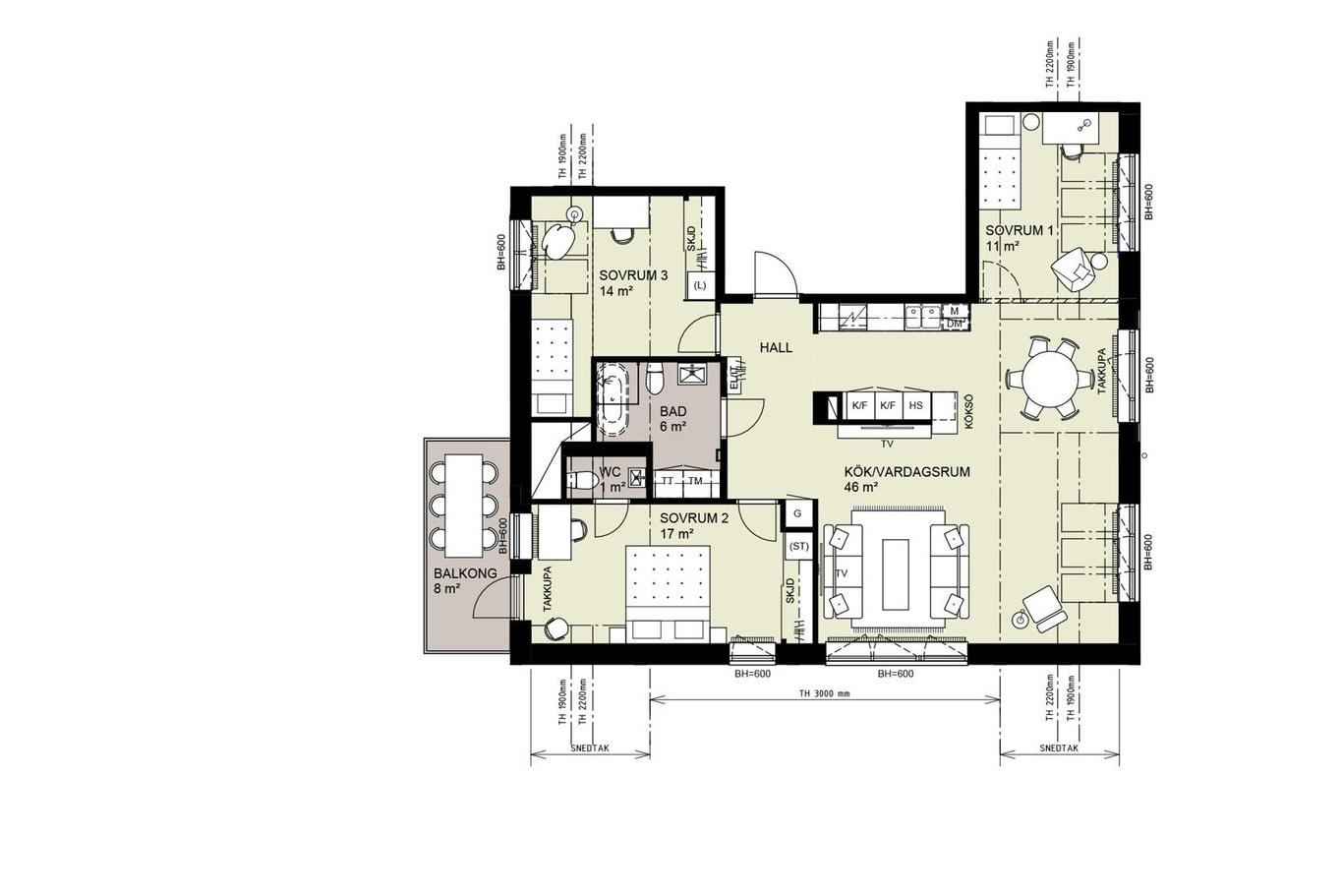 | 13-1302 | 3 | 3 rok | 85 kvm | 5 095 000 kr | 5 888 kr | Till salu |