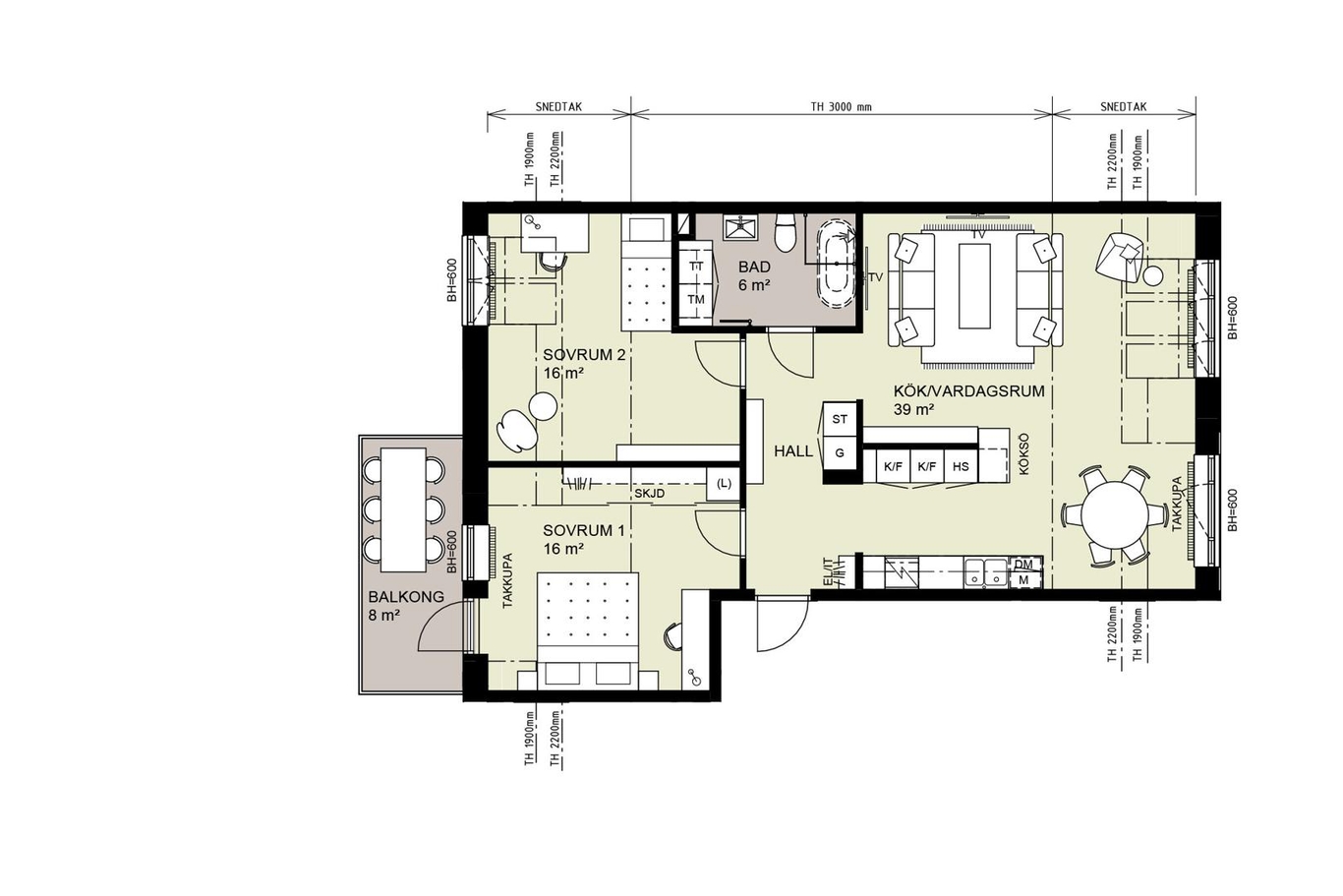 | 13-1302 | 3 | 3 rok | 85 kvm | 5 095 000 kr | 5 888 kr | Till salu |
