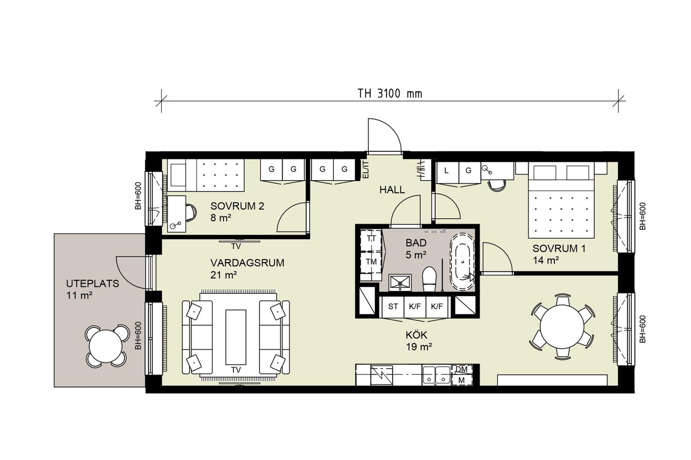 | 21-1002 | 1 rok | 42 kvm | 2 395 000 kr | 3 264 kr | Till salu | |