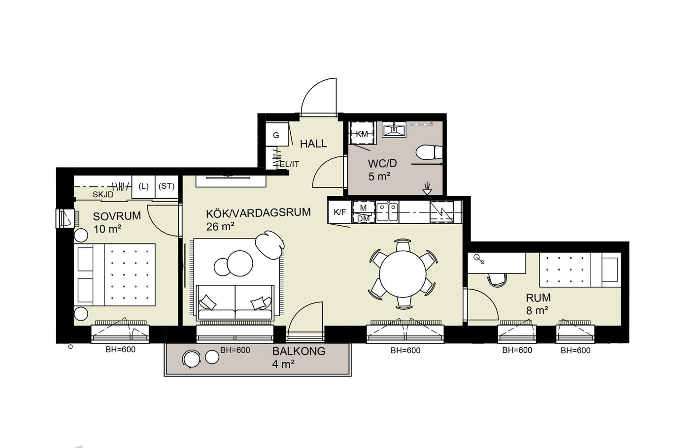 Välplanerad gaveltvåa med modern öppen planlösnining mellan vardagsrum och kök. Balkong i söderläge. Rymligt sovrum med gott om förvaring samt badrum med duch och tvättmaskin.